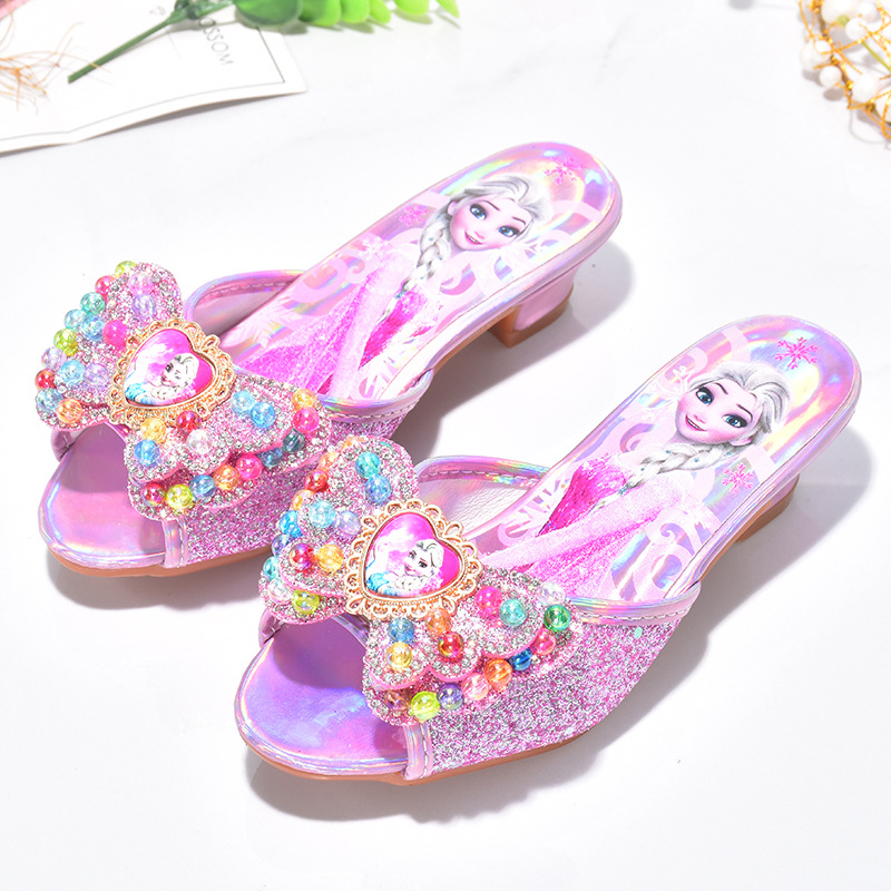어린 소녀 엘사 슬리퍼 여름 어린이 하이힐 패션 세련된 겉옷 여아 샌들 공주 크리스탈 어린이 신발