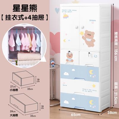 • 별빛 곰 (칸막이 메인 캐비닛 + 4 단 서랍) 이중 용도 걸이 옷/칸