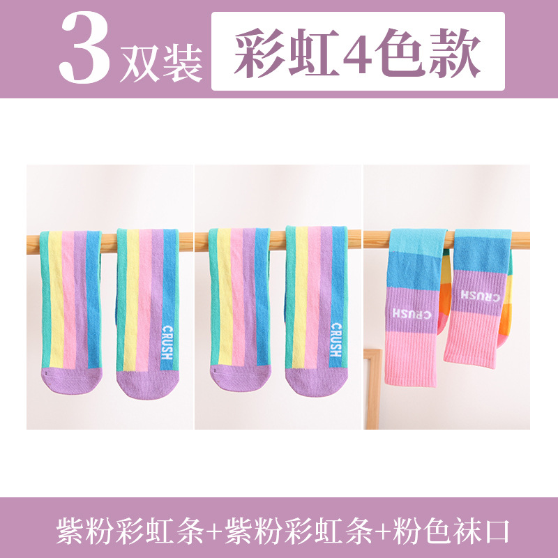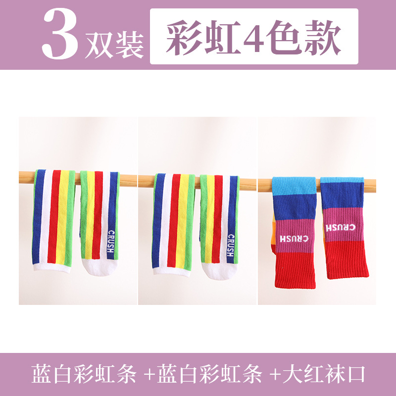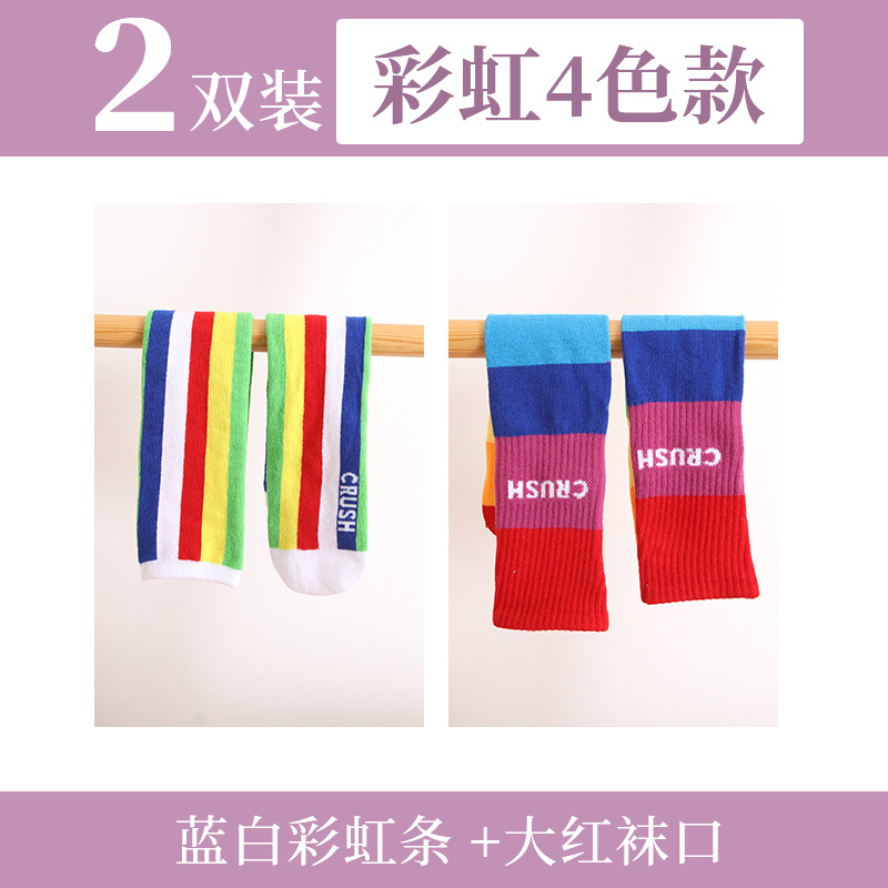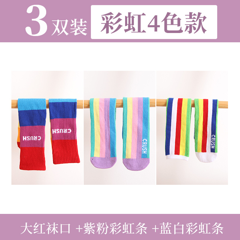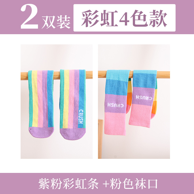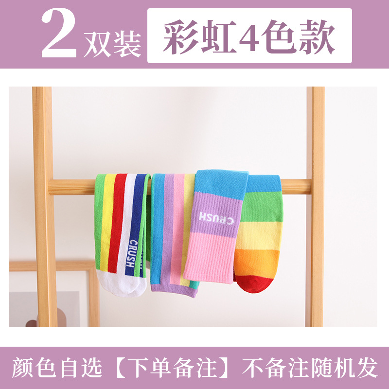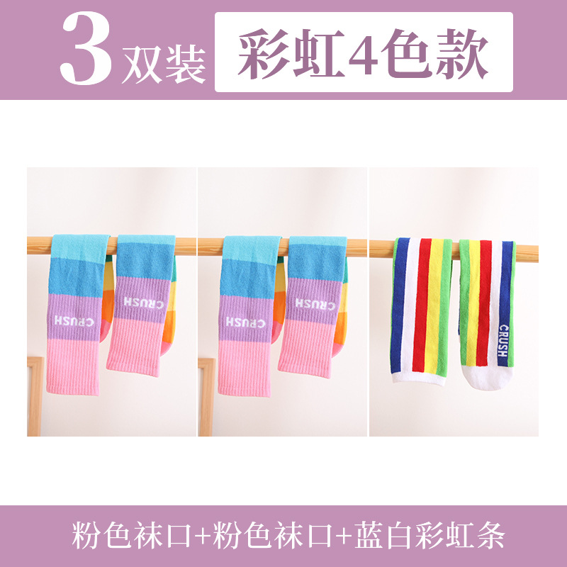 어린이 중간 길이 스타킹 봄과 가을 여름 얇은 무지개 양말 여아 다리 양말 세미 하이 스타킹 아기 무릎 높이 스타킹 조수