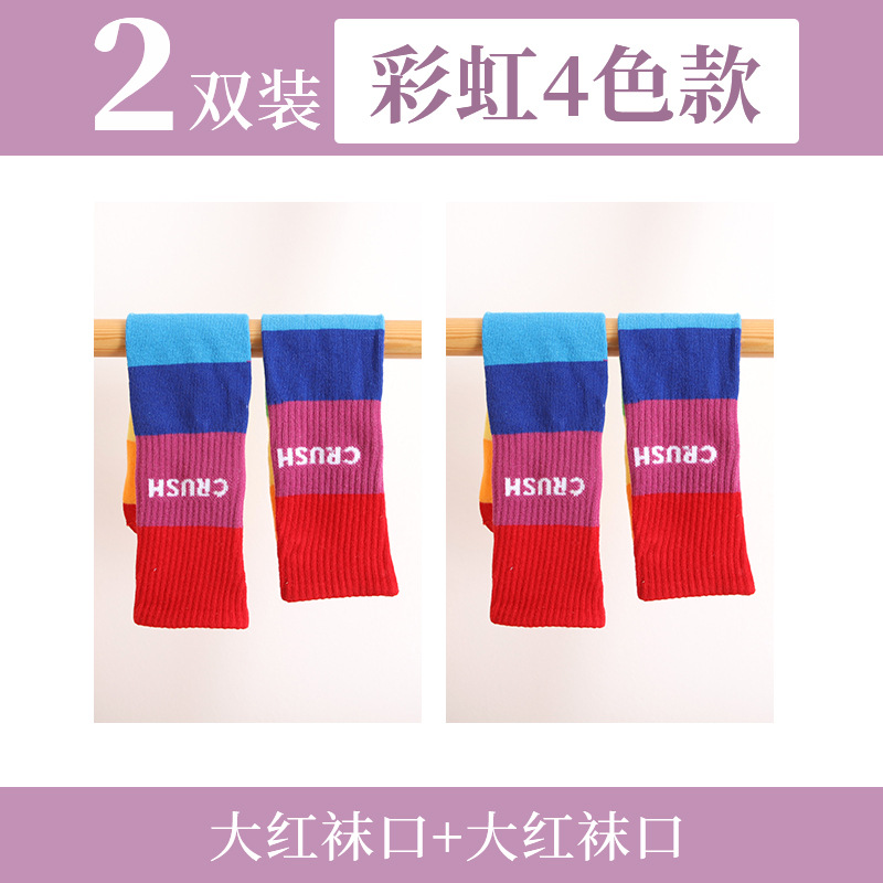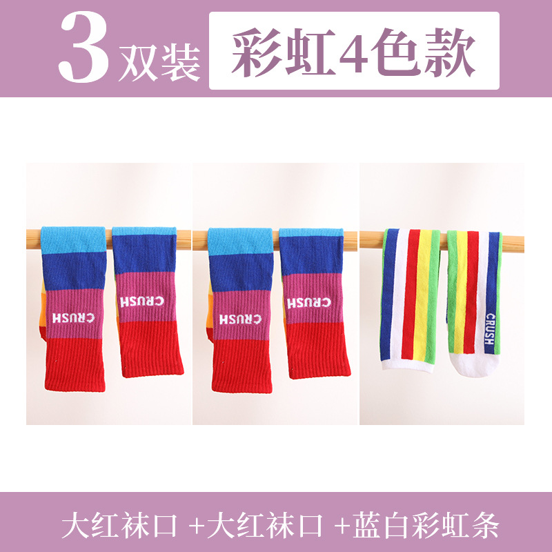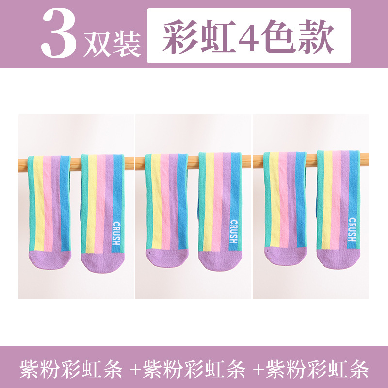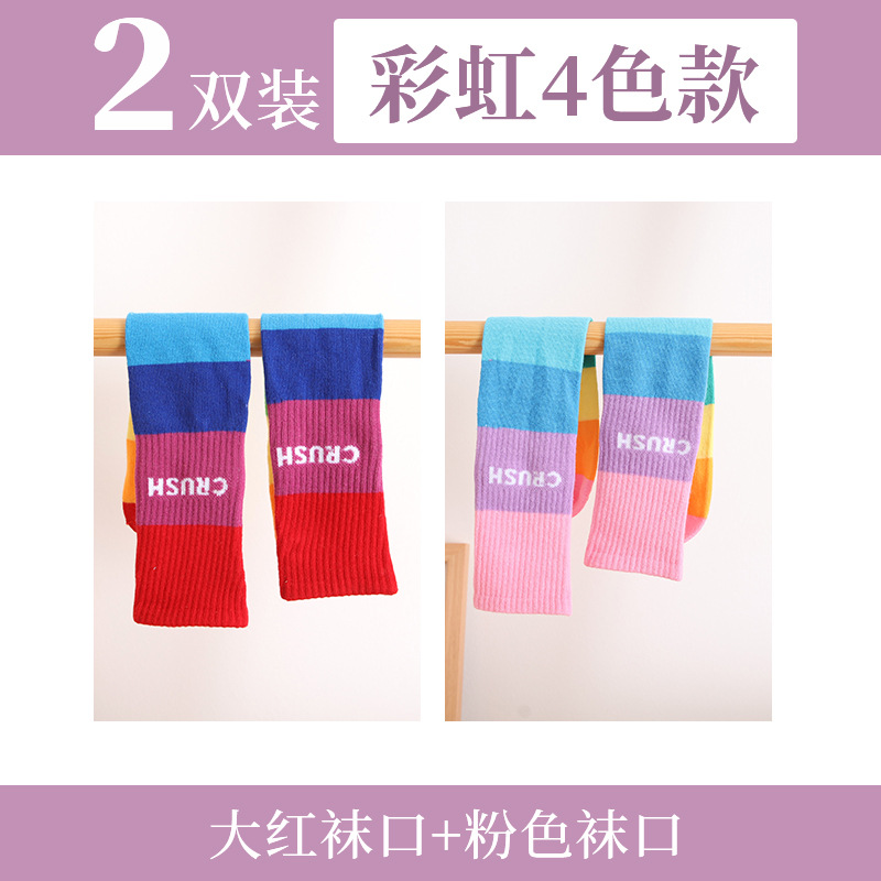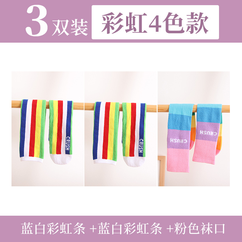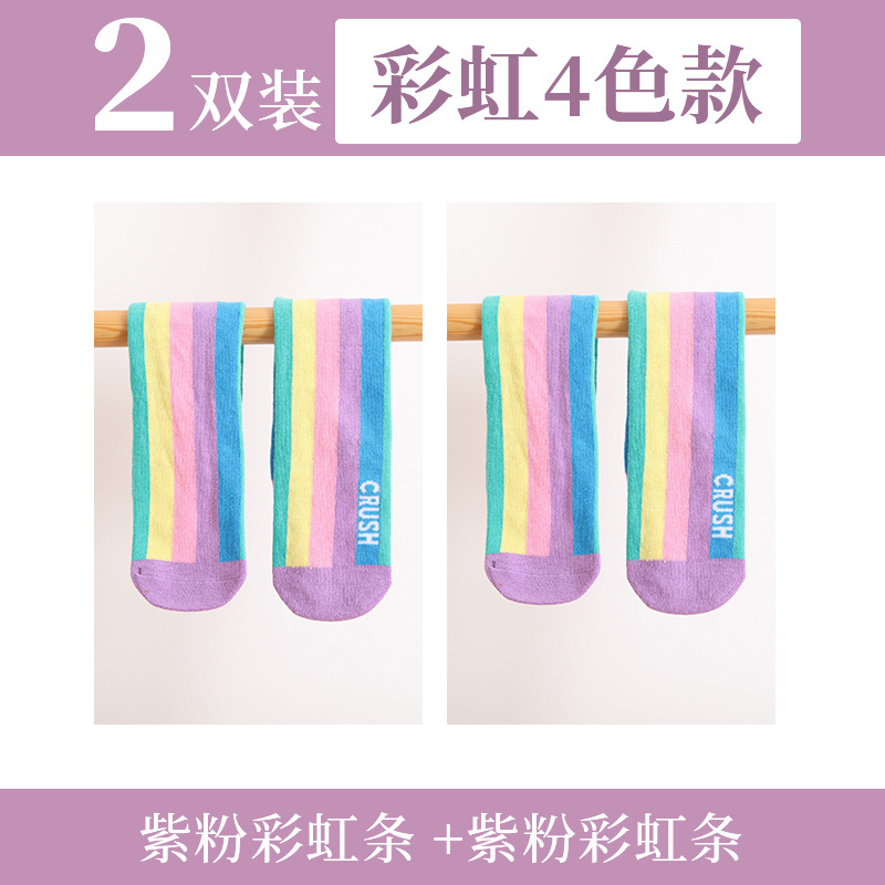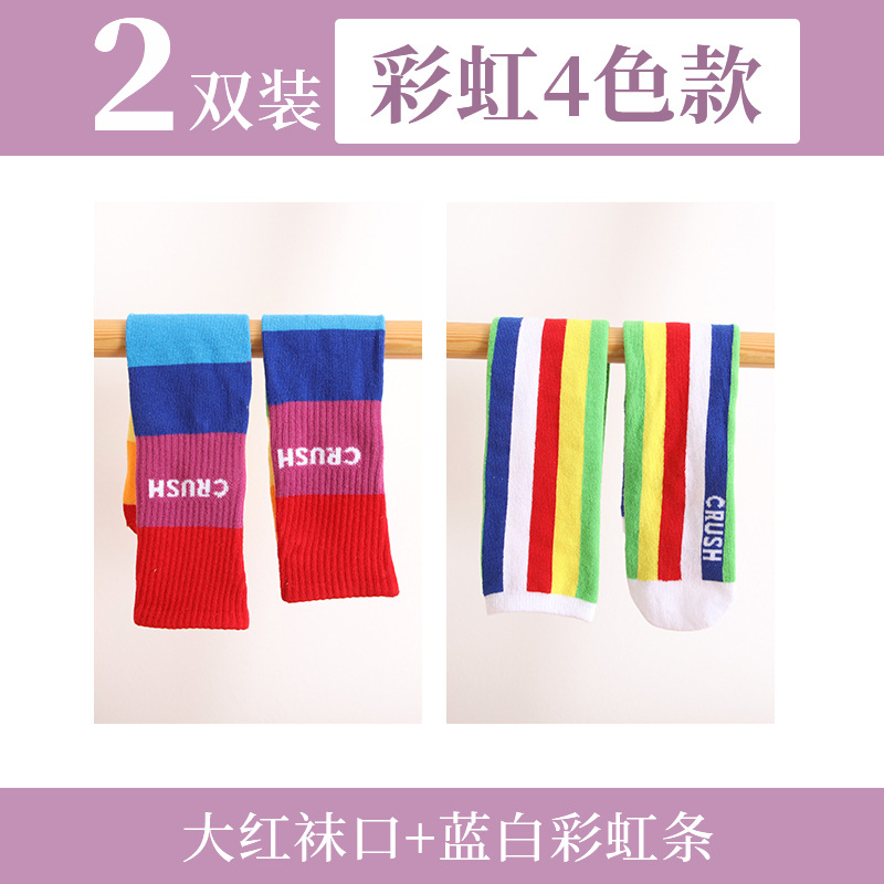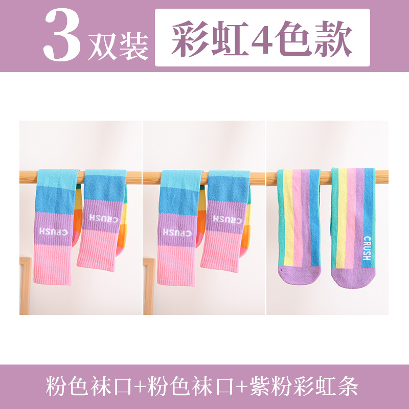 어린이 중간 길이 스타킹 봄과 가을 여름 얇은 무지개 양말 여아 다리 양말 세미 하이 스타킹 아기 무릎 높이 스타킹 조수