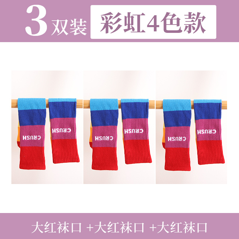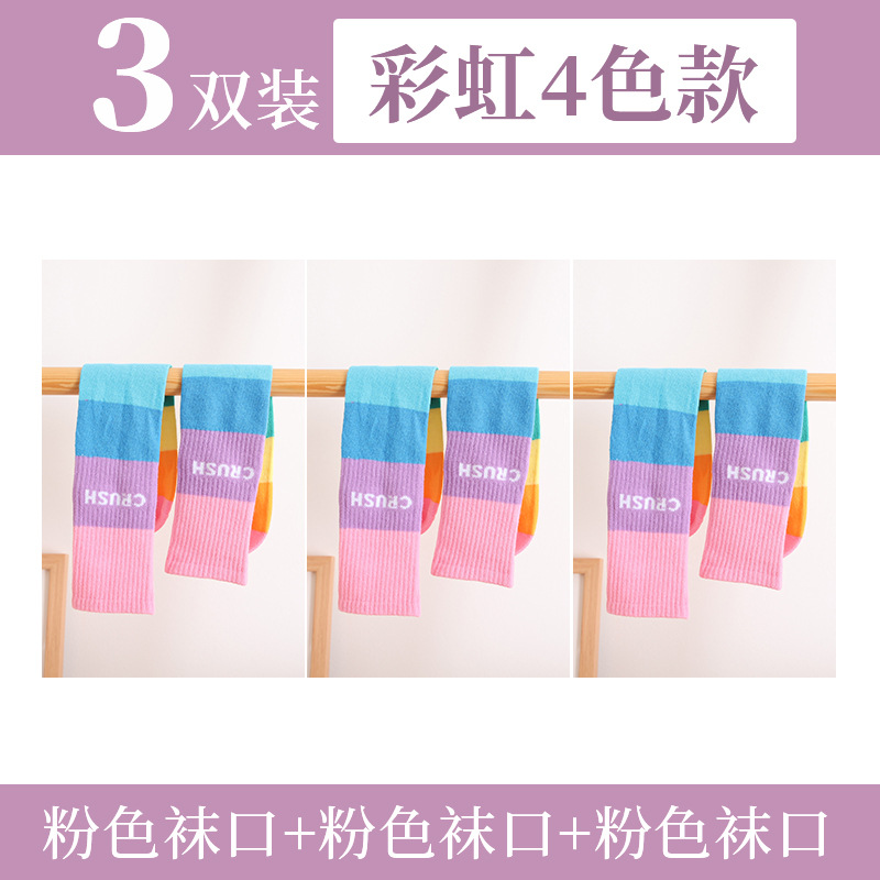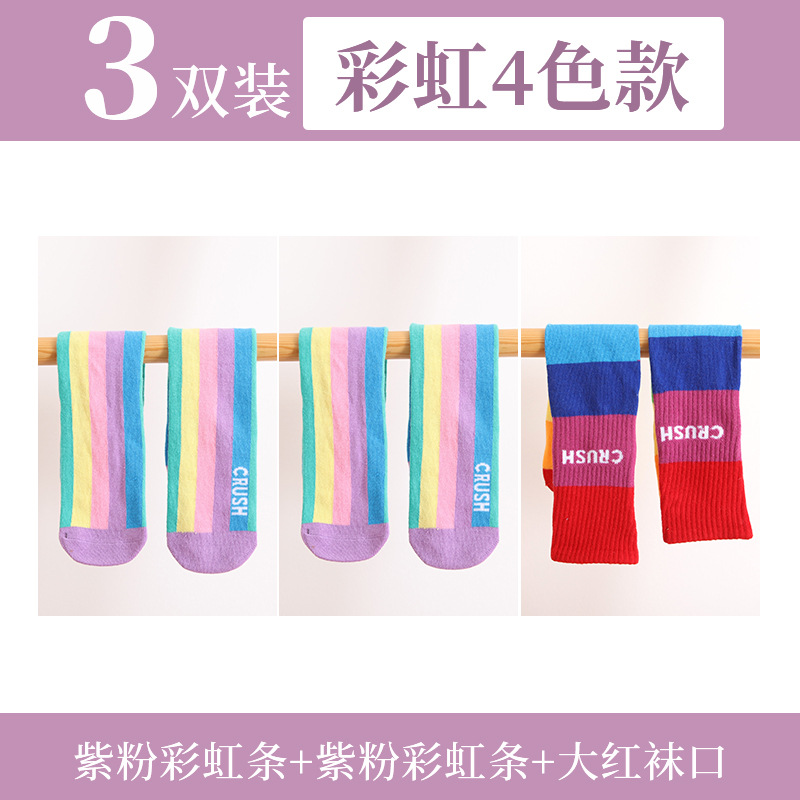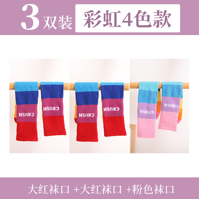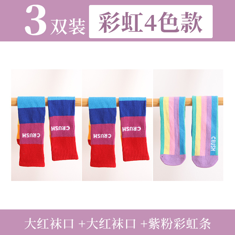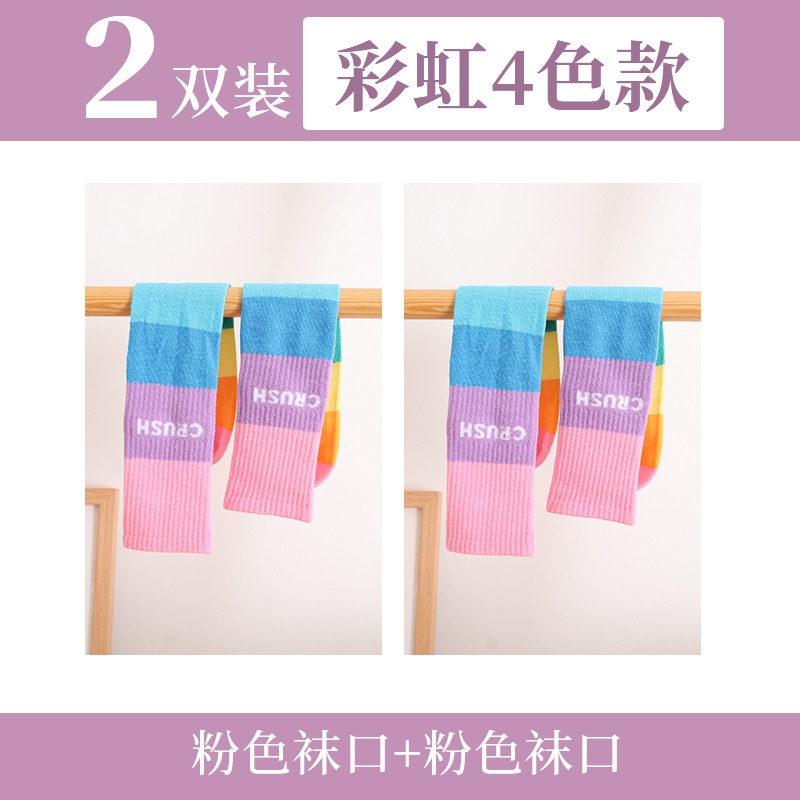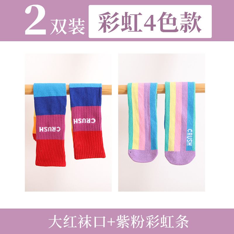 어린이 중간 길이 스타킹 봄과 가을 여름 얇은 무지개 양말 여아 다리 양말 세미 하이 스타킹 아기 무릎 높이 스타킹 조수