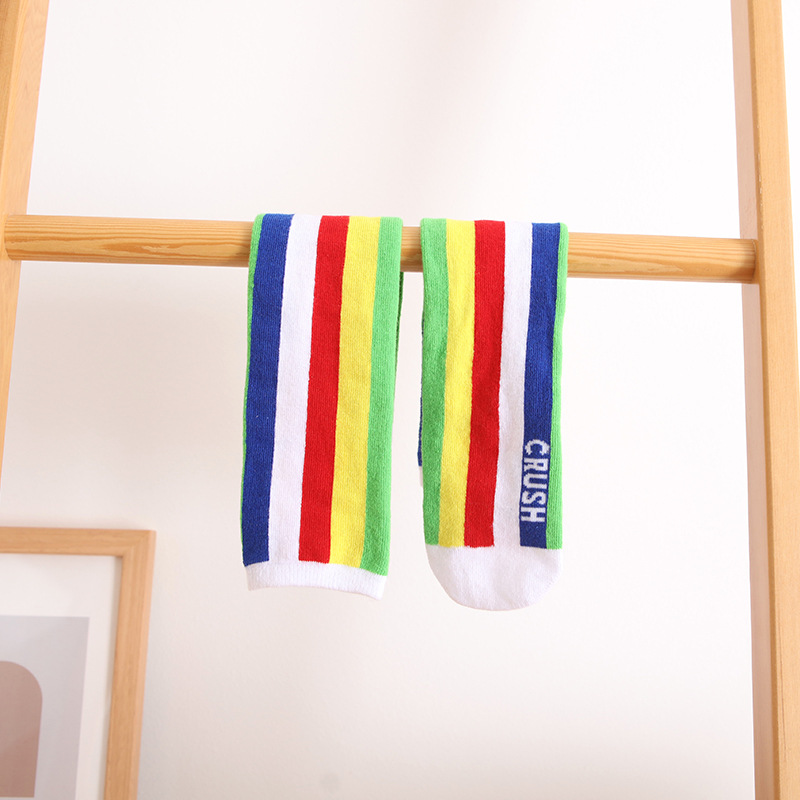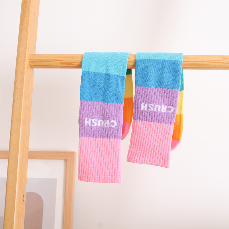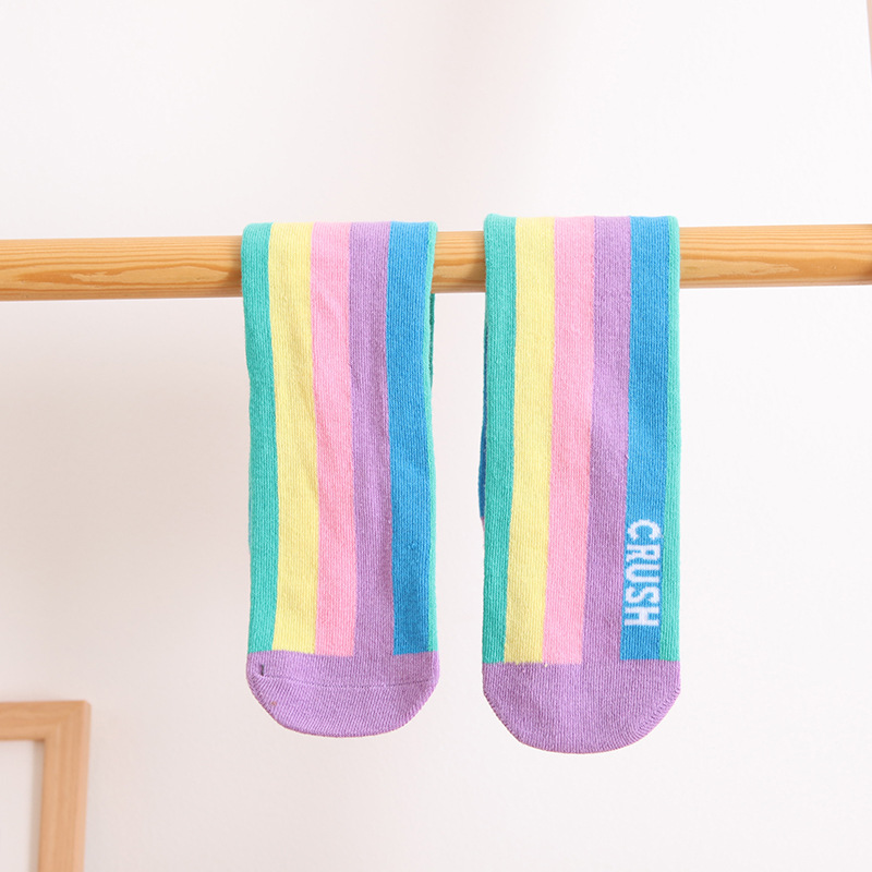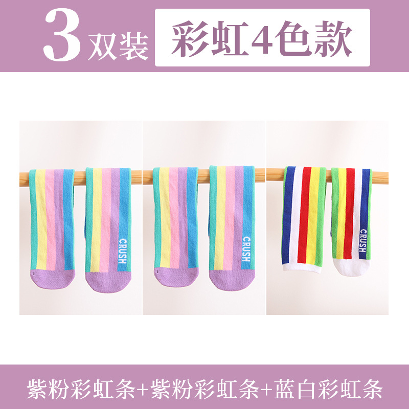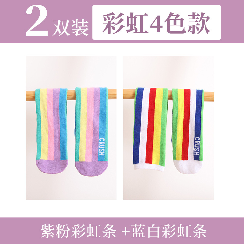 어린이 중간 길이 스타킹 봄과 가을 여름 얇은 무지개 양말 여아 다리 양말 세미 하이 스타킹 아기 무릎 높이 스타킹 조수스토어 가기