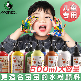 马利儿童水粉颜料500ml大瓶装幼儿园手指画可水洗罐装初学水彩画