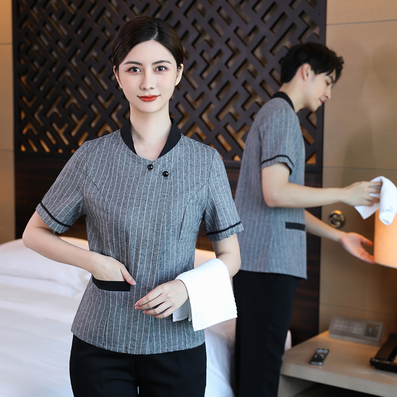 린넨 청소 옷 짧은 소매 여름 옷 통기성 호텔 방 승무원 청소 옷 은행 균일 속성 작업복스토어 가기