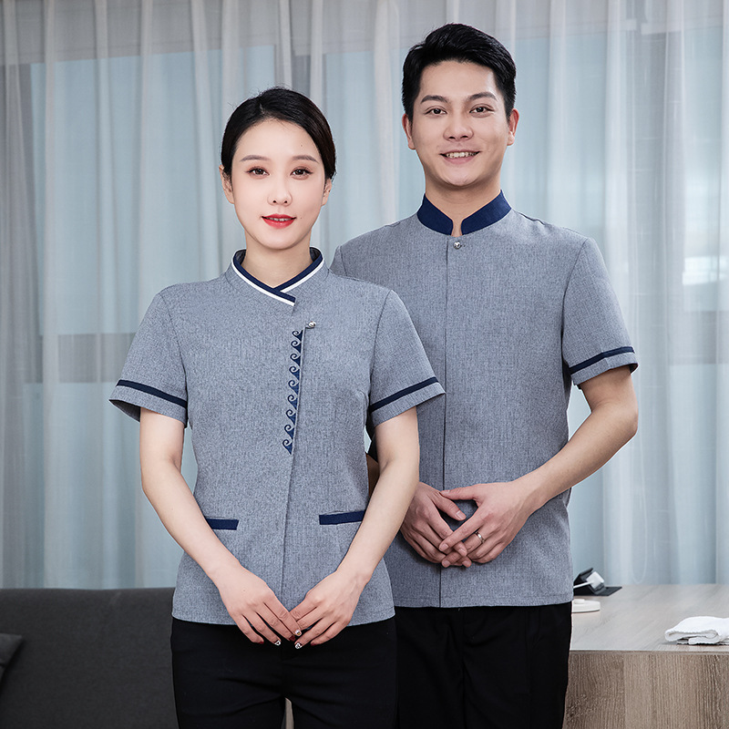 재고 린넨 청소 옷 반팔 스타 호텔 웨이터 청소 옷 플러스 사이즈 재산 층 직원 의류스토어 가기