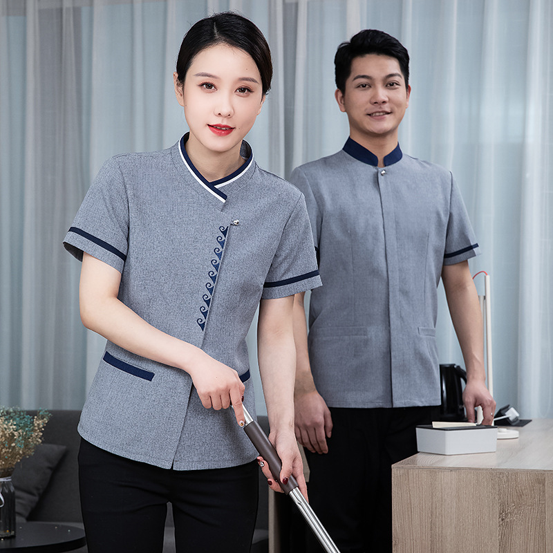 재고 린넨 청소 옷 반팔 스타 호텔 웨이터 청소 옷 플러스 사이즈 재산 층 직원 의류