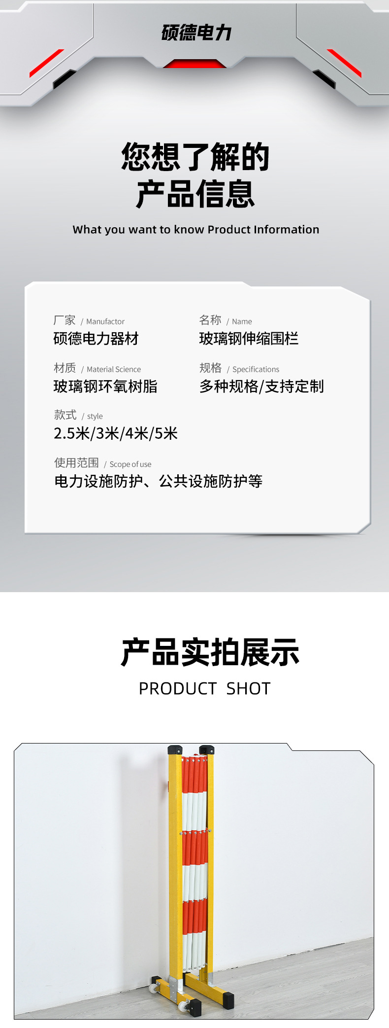 절연 텔레스코픽 울타리 FRP 전기 안전 울타리 휴대용 접이식 보호 울타리 이동식 울타리스토어 가기