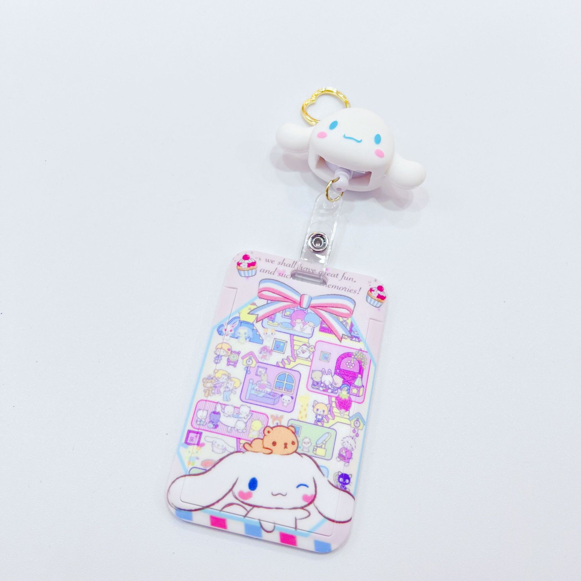귀여운 만화 사리 오 학생 카드 세트 창조적 인 텔레스코픽 카드 세트 버스 카드 액세스 카드 세트 분실 방지 책가방 교수형 버클
