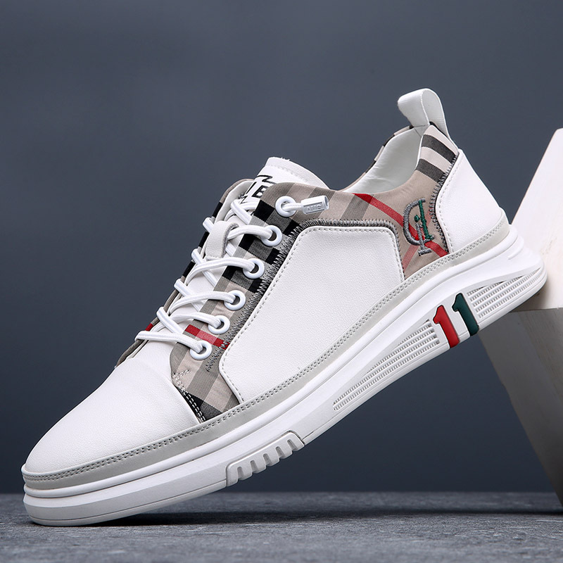 재고 빠르게 새로운 트렌드 캐주얼 화이트 신발 캐주얼 가죽 신발 남성 패션 격자 무늬 신발 남성