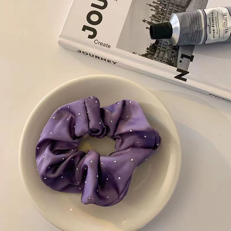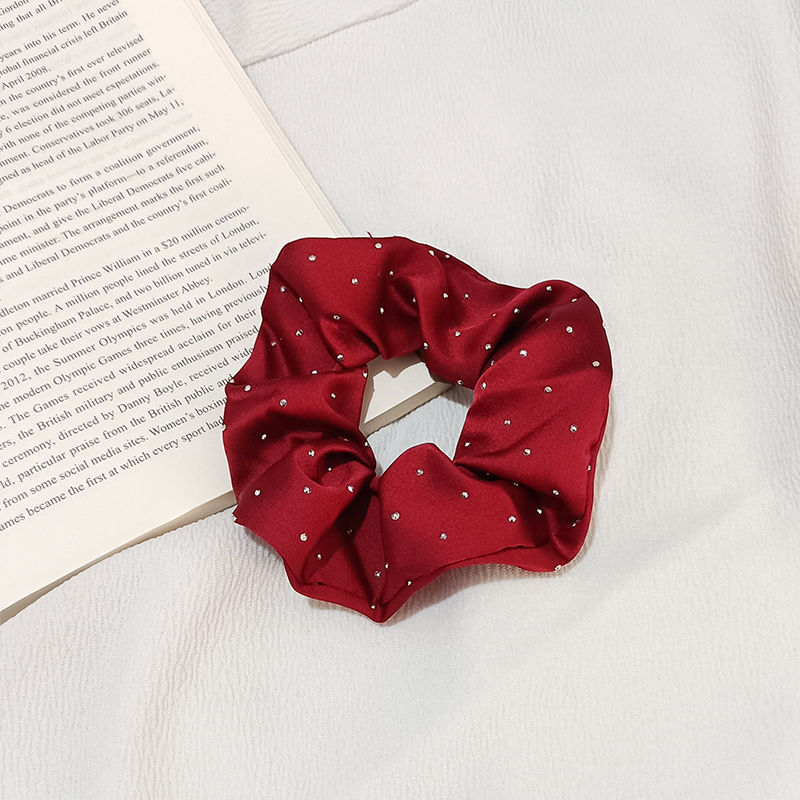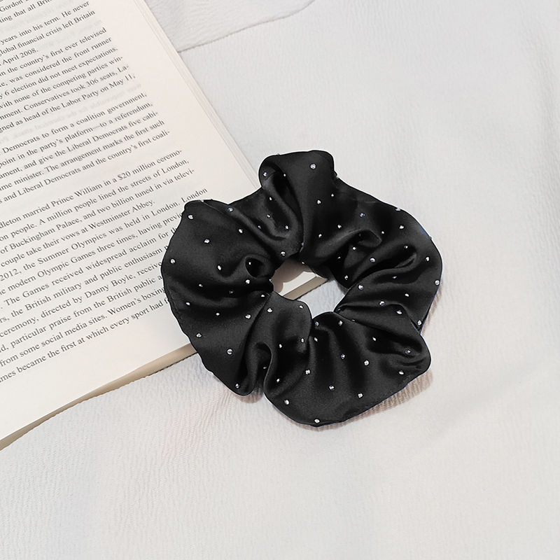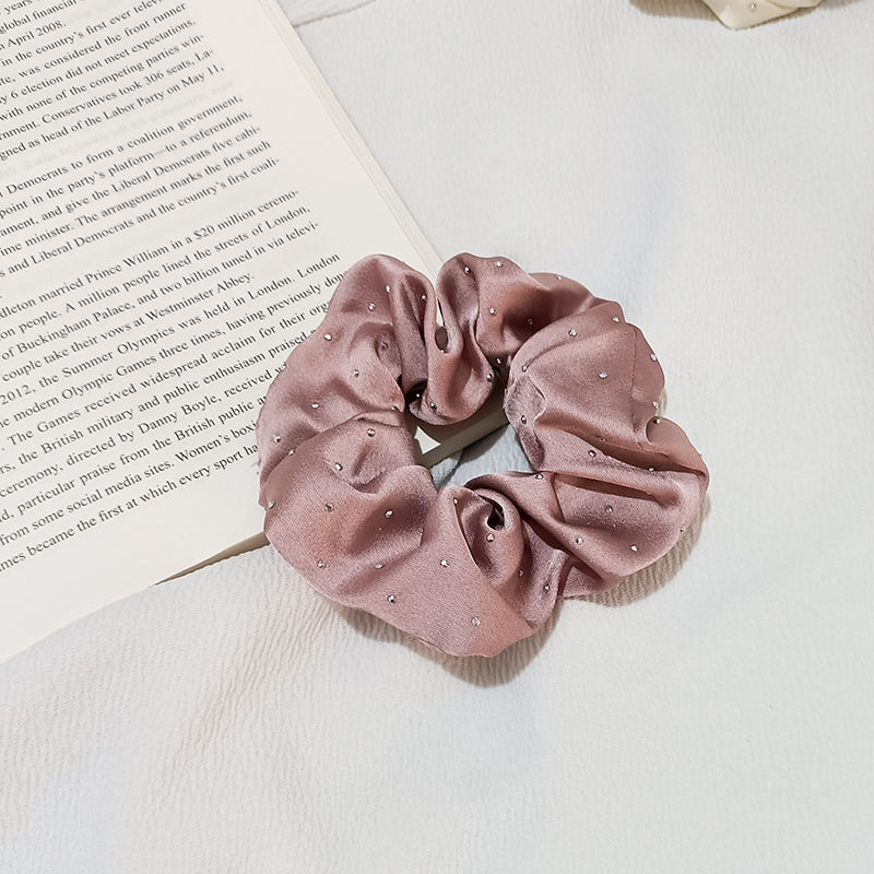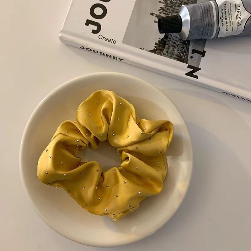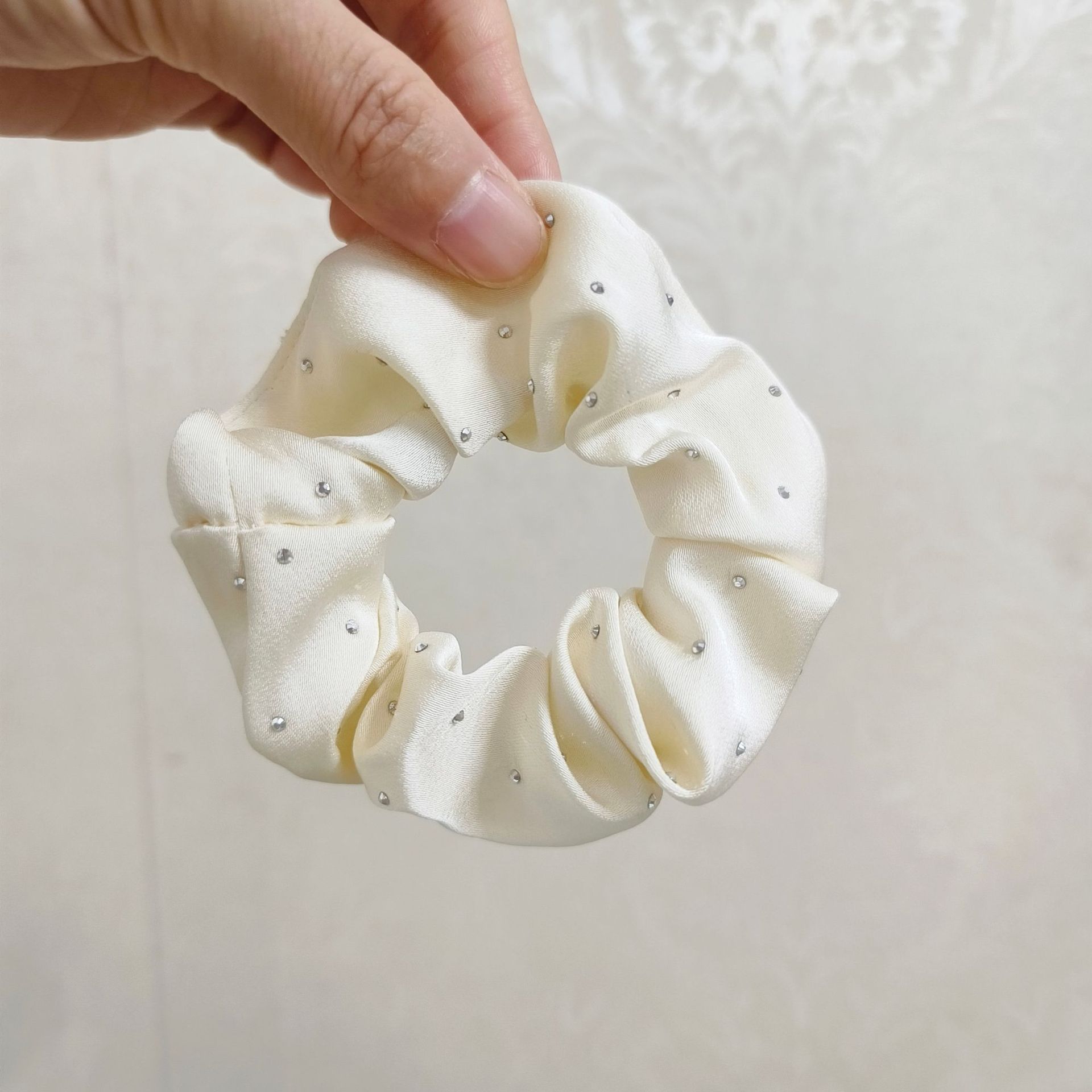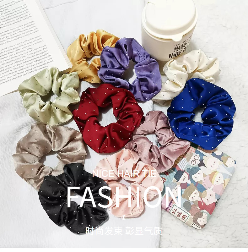 고급 프랑스 새틴 결장 헤어 링 단색 라인 석 간단한 모자 볼 헤드 모든 일치 빈티지 틈새 헤어 액세서리