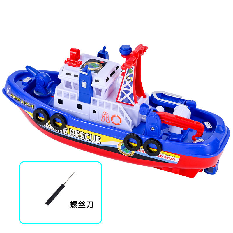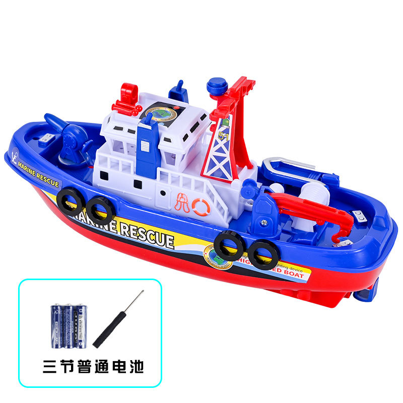 여름의 워터 제트 전기 소방 보트 블루 시뮬레이션 선박 모형 음악 가벼운 어린이 목욕 물 장난감 보트