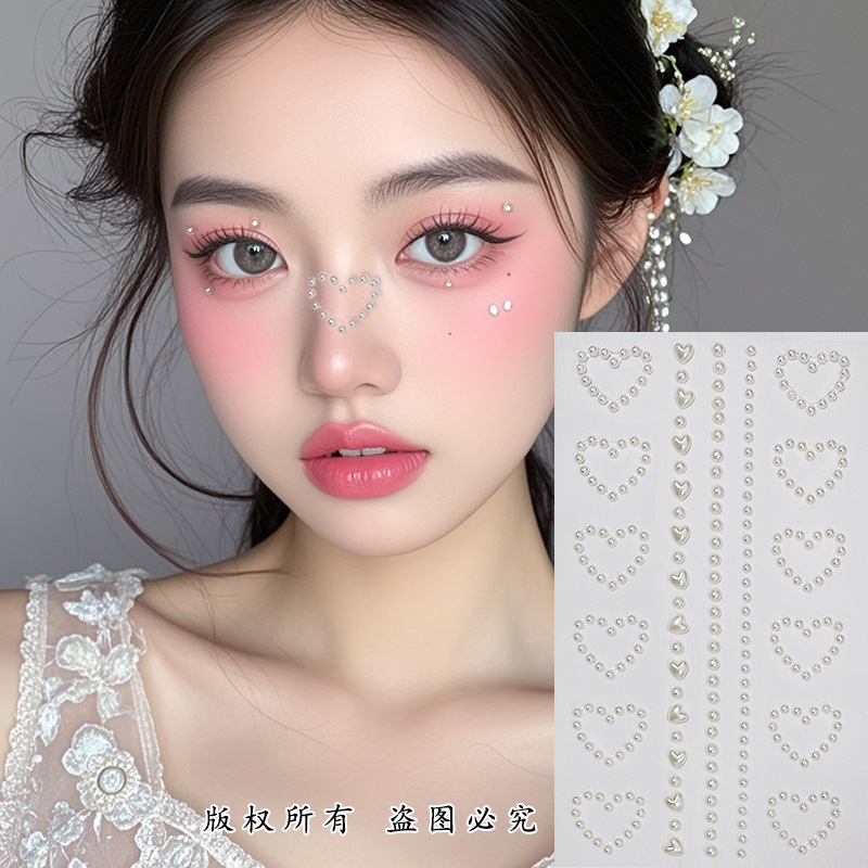 립스터드, 귀걸이, 진주 스티커, 메이크업 스티커, 얼굴 장식 스티커, 눈가 장식 스티커, 눈물 모양 스티커, 눈썹 장식 스티커