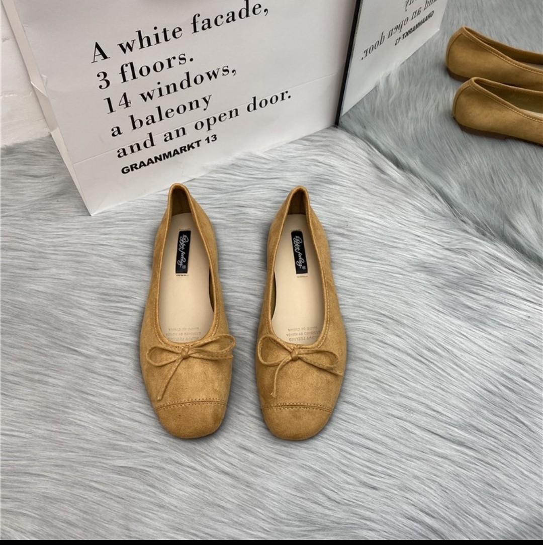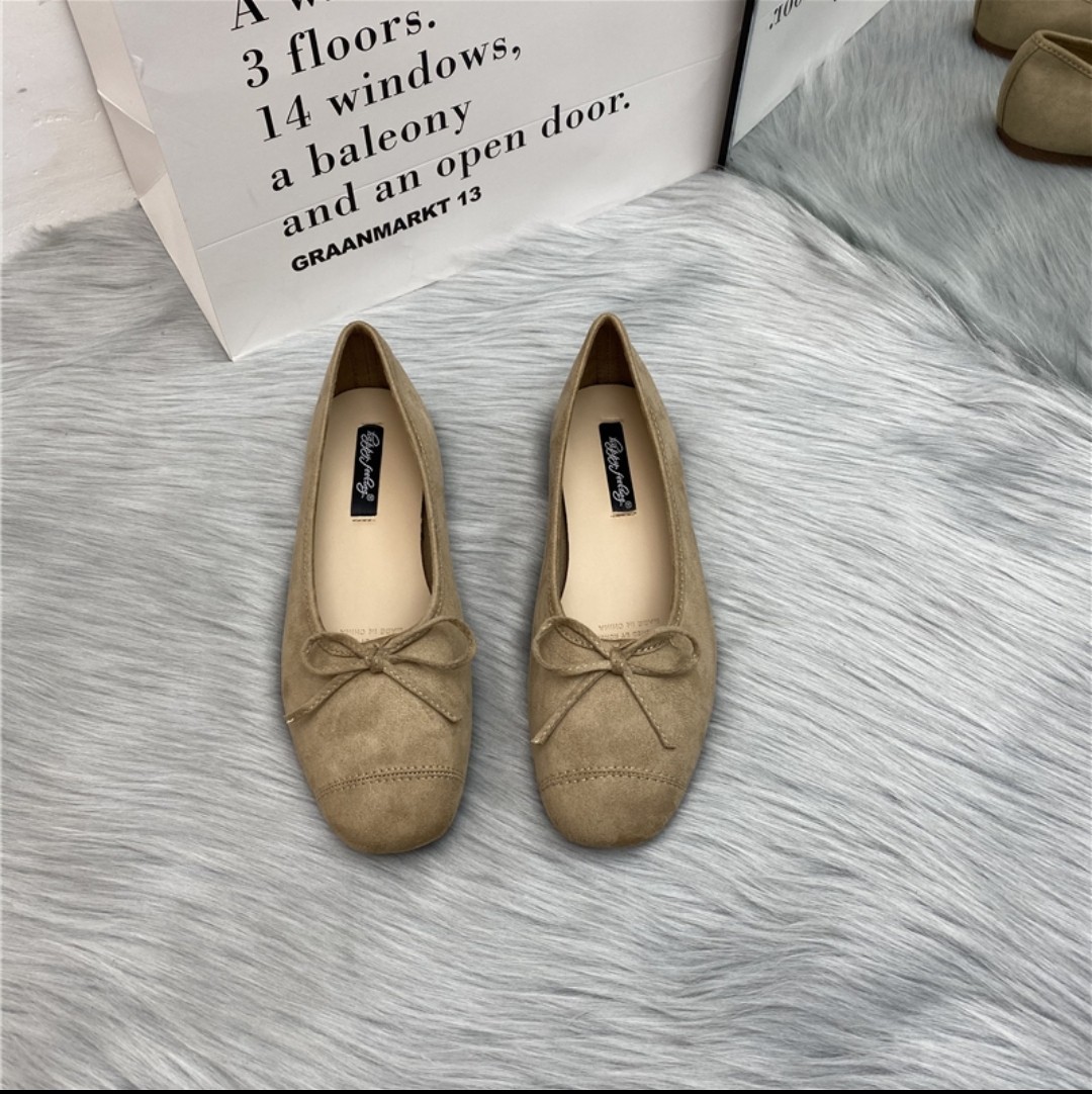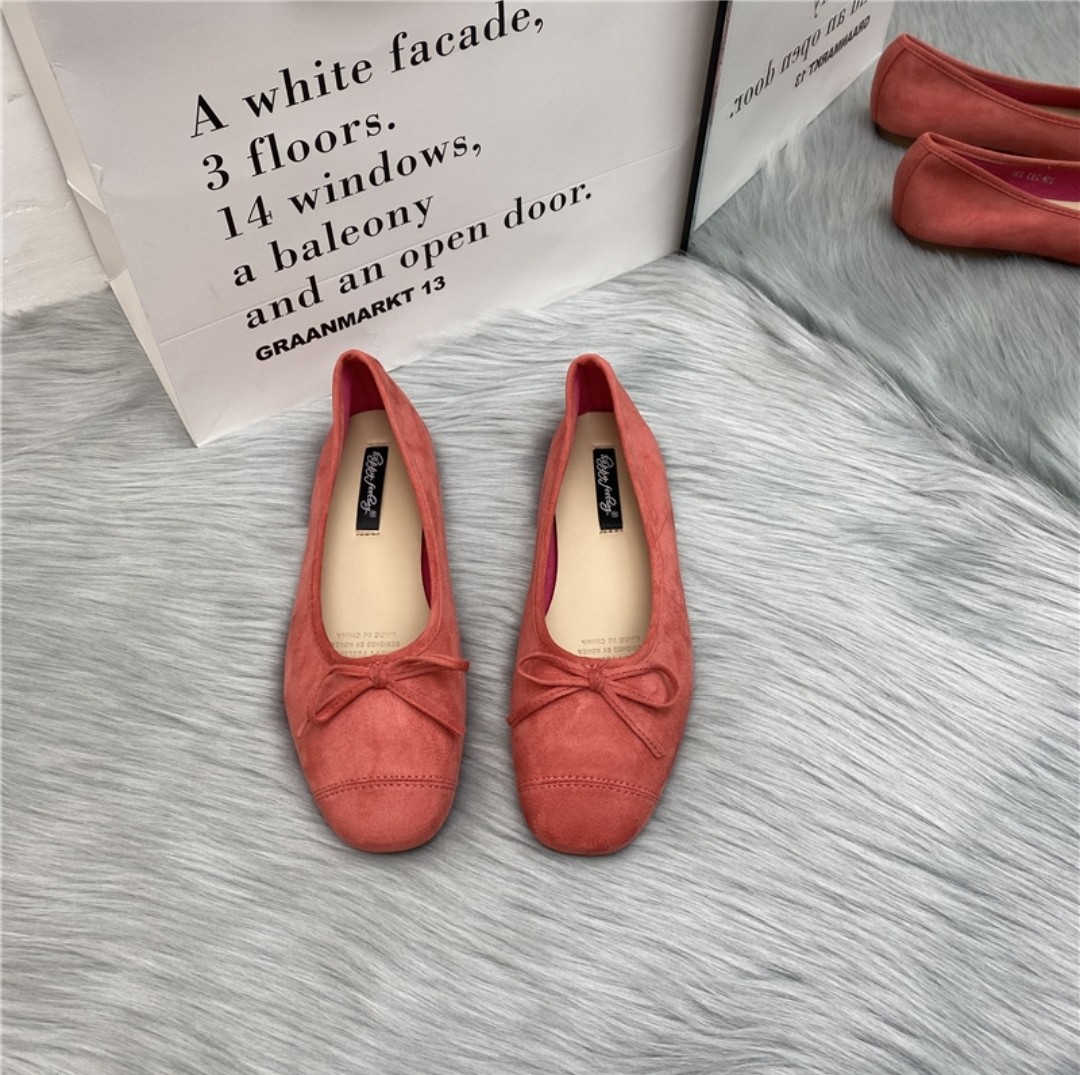행복한 느낌 신발 한국 사각 발가락 얕은 나비 플랫 발레 모든 일치 빈티지 신발