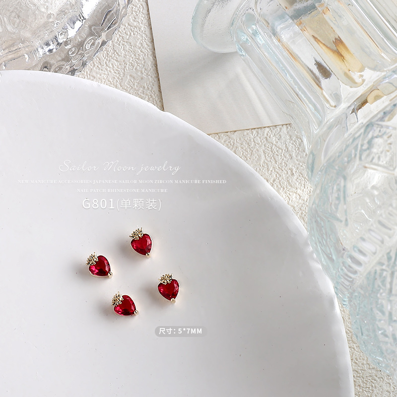 일본 스타일 인터넷 연예인 아름다운 소녀 전사 합금 보석 사랑 물 얼음 문 열쇠 빨간 다이아몬드 네일 다이아몬드 슈퍼 플래시 고급 다이아몬드