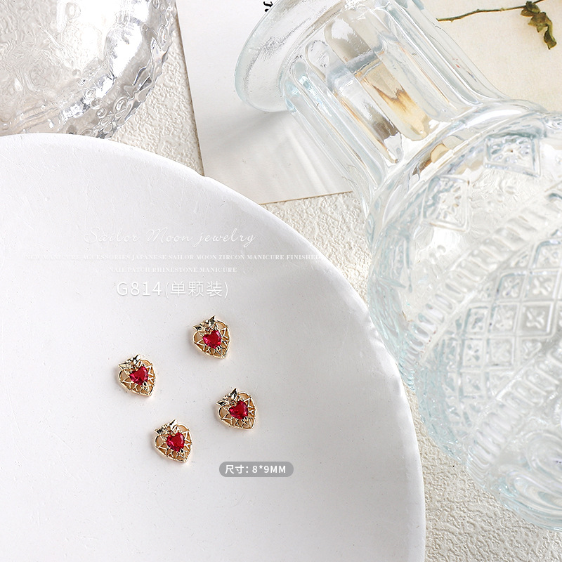 일본 스타일 인터넷 연예인 아름다운 소녀 전사 합금 보석 사랑 물 얼음 문 열쇠 빨간 다이아몬드 네일 다이아몬드 슈퍼 플래시 고급 다이아몬드스토어 가기