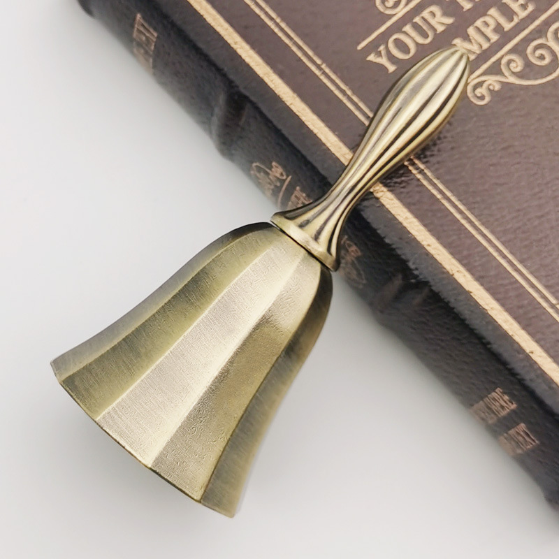 날카로운 물건, 손으로 크랭크 벨, 레트로 구리 벨, 식사 통과, 요리, 링, 금속 노인 종, 클래스 종, 조기 교육 종이있는 스톨스토어 가기