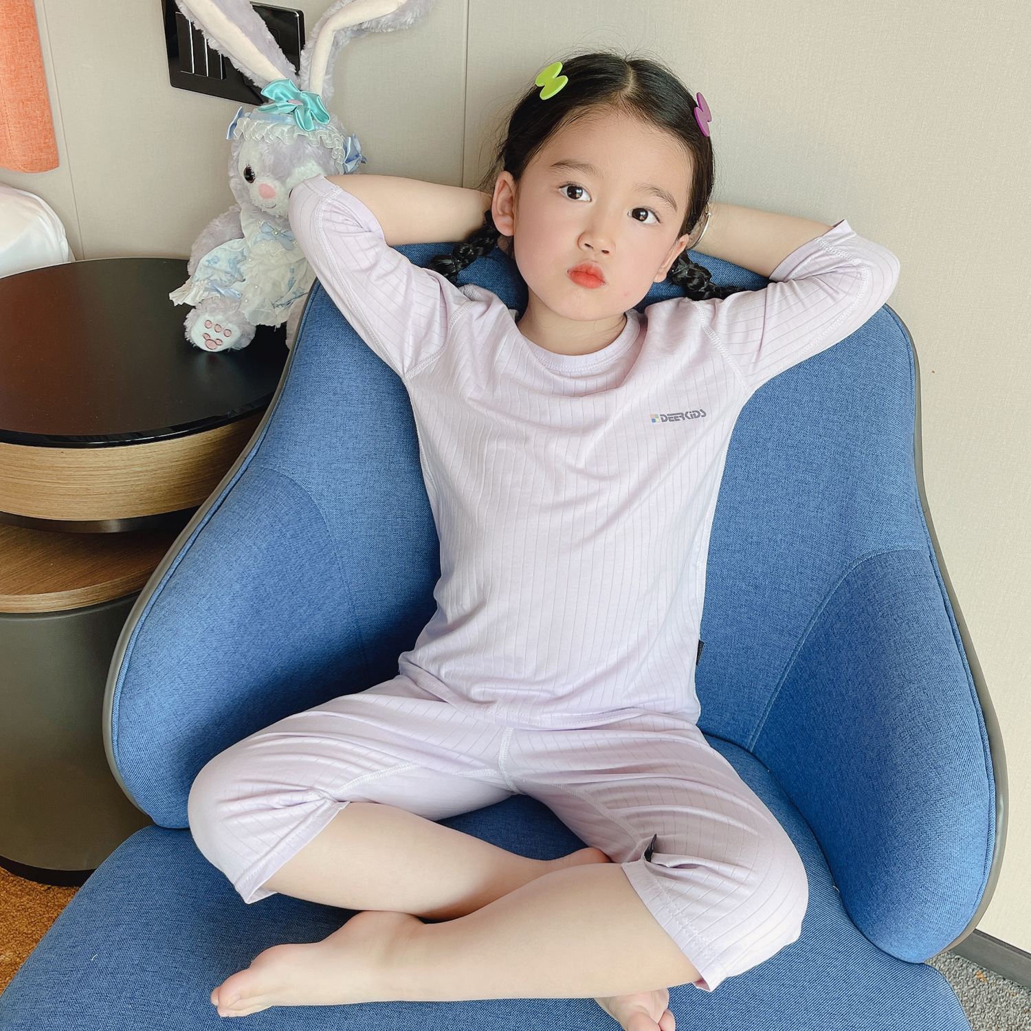 여름 새로운 어린이 잠옷 세트 소년 소녀 가정 의류 소년과 소녀를위한 일곱 소매 에어컨 옷스토어 가기
