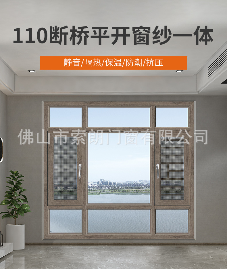 110 깨진 다리 창 스크린 통합 알루미늄 합금 시스템 창 평면 개방 슬라이딩 창 방음 밀봉 된 발코니 중공 유리 창