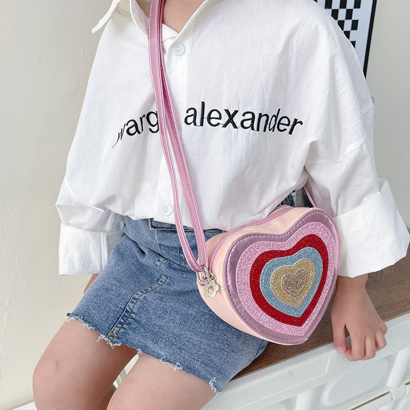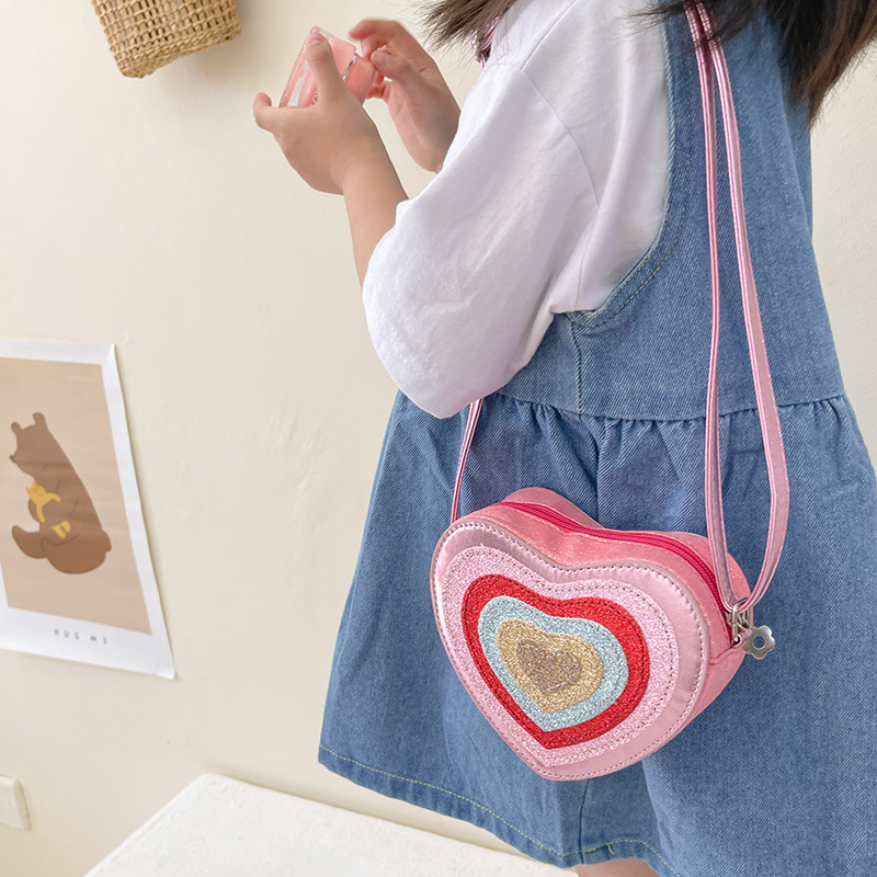 어린이 가방 패션 유치원 어린이 가방 한국 하트 모양의 장식 동전 지갑 귀여운 소녀 크로스 바디 백 미니 작은 가방