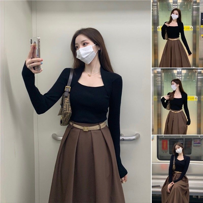 YT22980 젠틀웨어 기질 성숙한 로얄 시스터 스타일 고급 스웨터 하프 길이 스커트 여성용 투피스 세트