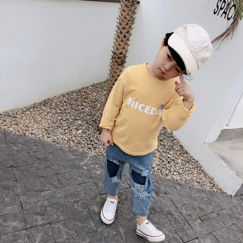 재고 정리 3/21일 9.9위안 무료배송 남아용 긴팔 티셔츠 아동용 라운드넥 기모감 여아용 이너웨어
