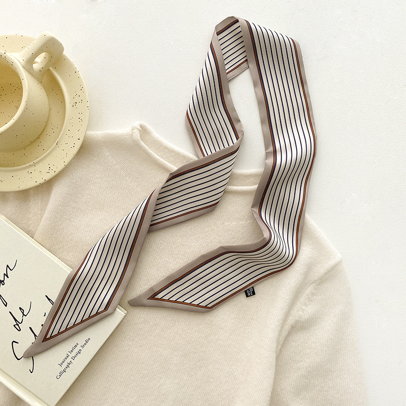 2023 실크 스카프 좁은 긴 스트라이프 더블 레이어 작은 스카프 봄과 가을 한국 리본 스카프 인스 타 그램 인기있는 넥타이 머리 머리 스카프스토어 가기