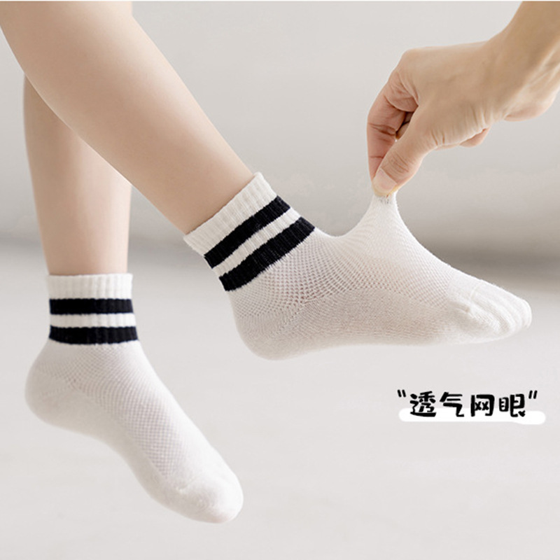 어린이 양말 봄과 여름 얇은 메쉬 통기성 흑백 회색 학생 양말 두 막대 소녀 도매 제조 업체 튜브 양말 면