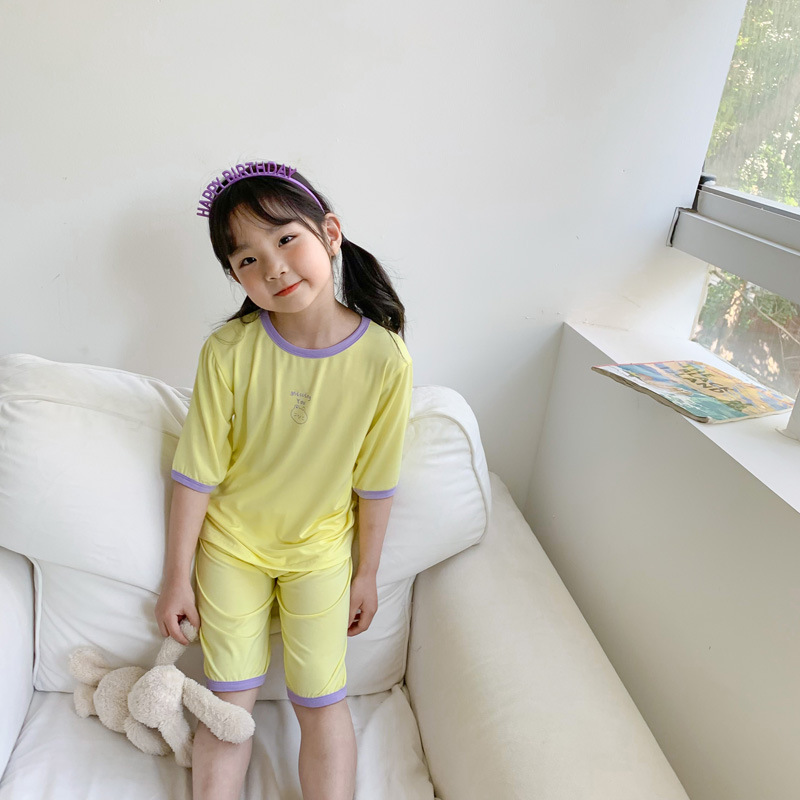 2023 어린이 여름 에어컨 가정 의류 소년과 소녀 7 포인트 아기 잠옷 세트 아동 의류 도매스토어 가기