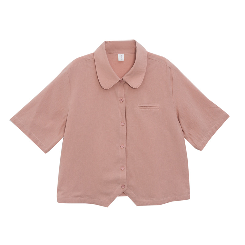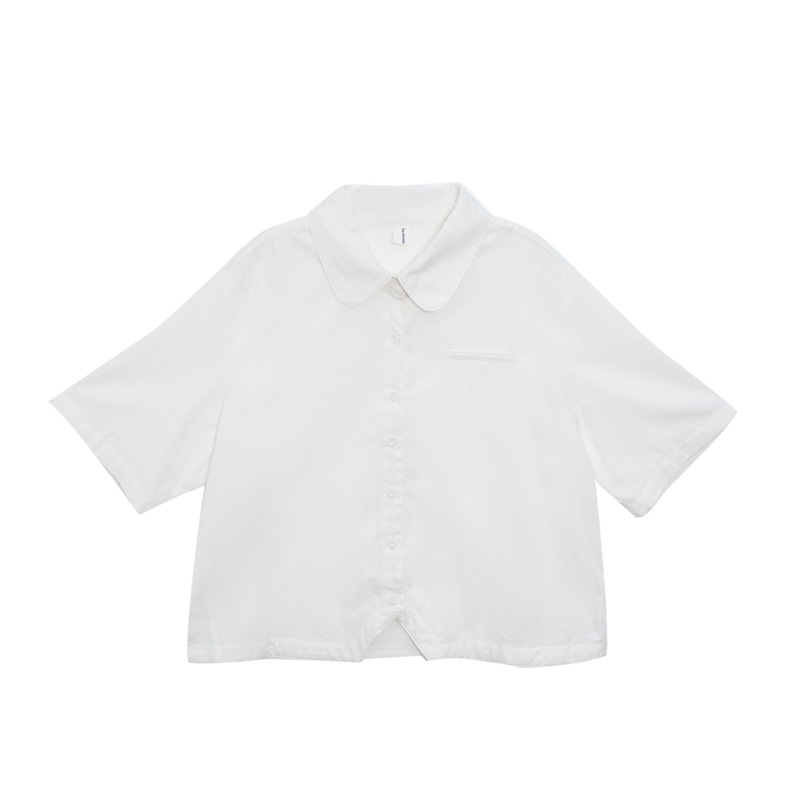 Huangzheng 오리지널 순면 반팔 셔츠 여성 디자인 2025 봄 여름 신작 일본 문학 카디건 라펠 셔츠스토어 가기