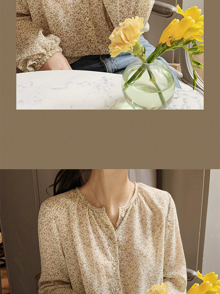 패션 꽃 쉬폰 셔츠 긴 소매 이른 가을 복고풍 홍콩 스타일 달콤한 느슨한 퍼프 슬리브 작은 셔츠 여성을위한 세련된 탑스토어 가기