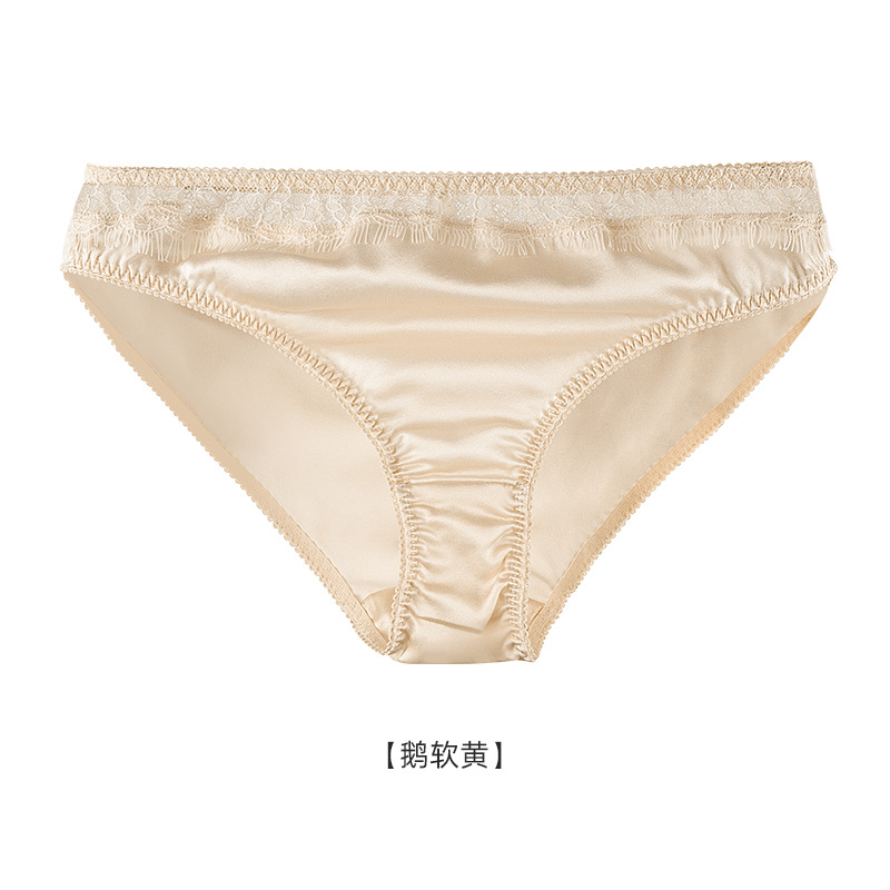 나비 자수 19mm 실크 여성용 속옷 100% 뽕나무 실크 로우 웨이스트 레이스 삼각 팬티 실크처럼 부드럽고 통기성 좋으며 피부 친화적