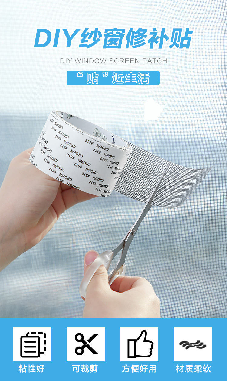 사용자 정의 화면 창 스티커 구멍 수리 자체 접착 테이프 모래 창 스티커 거즈 메쉬 솔기 수리 보조금 후크 및 루프 공장 직판