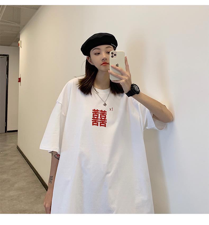 커플 복장 플러스 사이즈 300kg Xi Zi 인쇄 반팔 티셔츠 여성 여름 지방 mm240 kg 캐주얼 느슨한 조커 코트