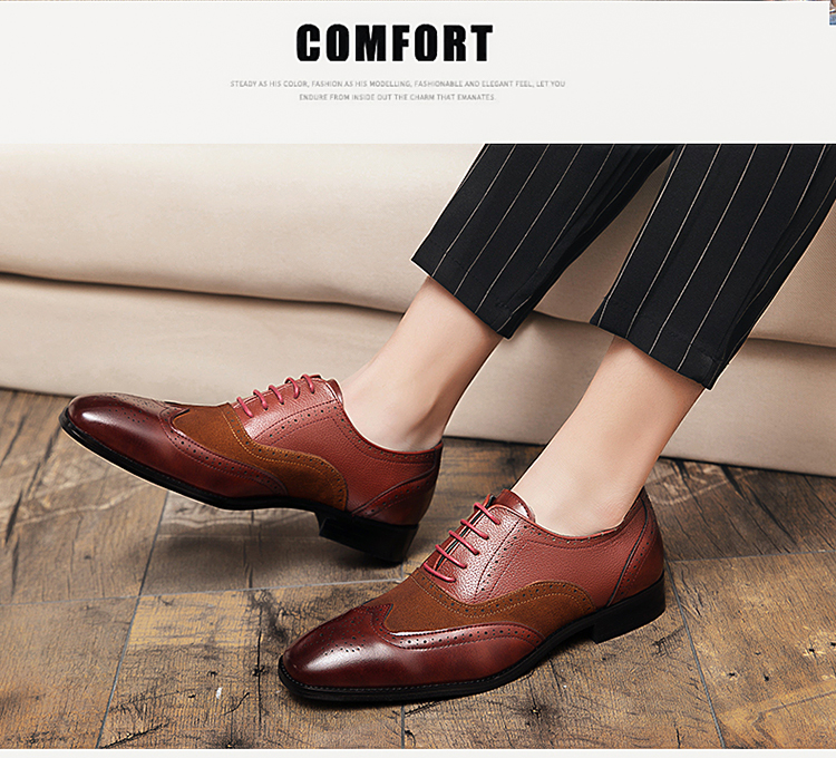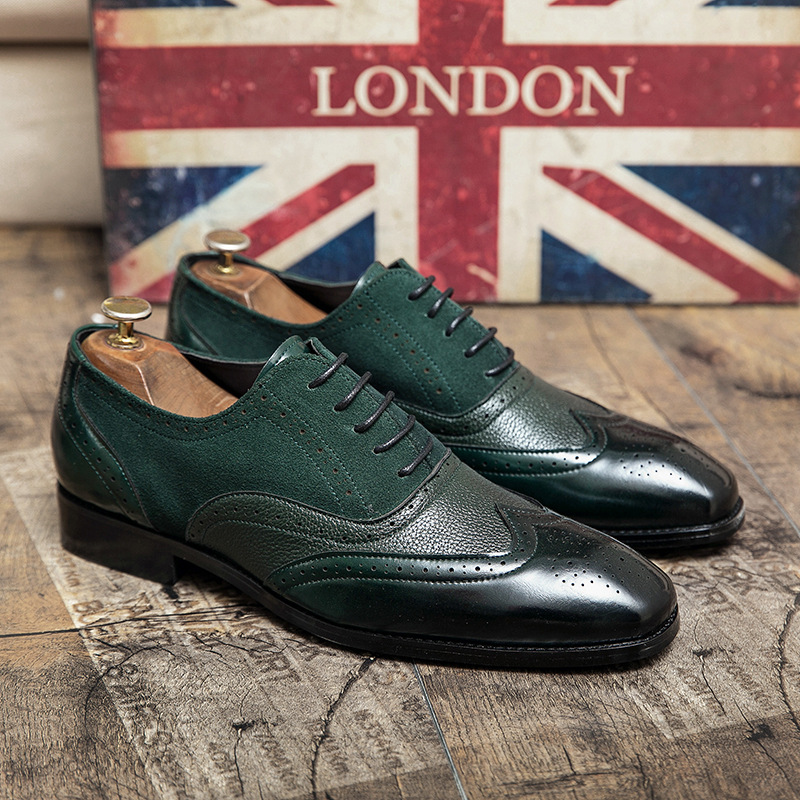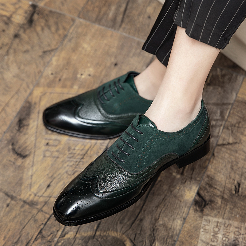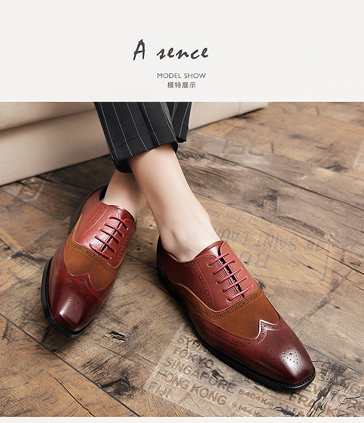 2022 여름 새로운 브록 조각 남성 신발 영국 내부 높이 증가 부드러운 바닥 사각형 머리 파란색 유행 작은 가죽 신발 남성용스토어 가기