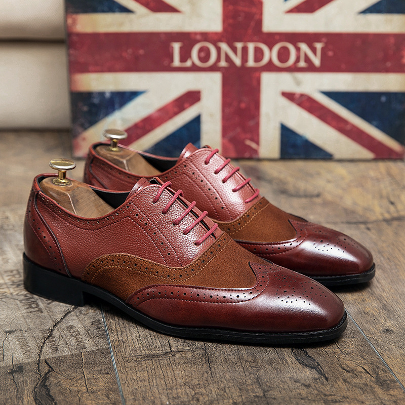 2022 여름 새로운 브록 조각 남성 신발 영국 내부 높이 증가 부드러운 바닥 사각형 머리 파란색 유행 작은 가죽 신발 남성용