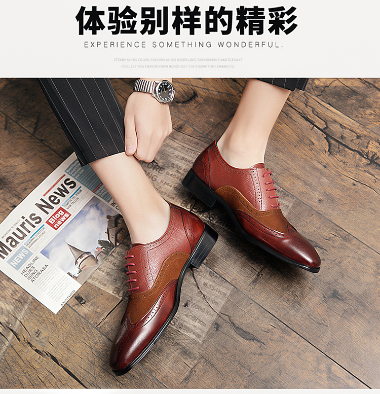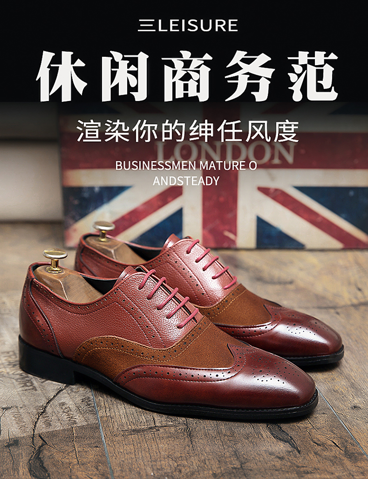 2022夏季新款布洛克雕花男鞋英伦内增高软底方头蓝色时尚小皮鞋男