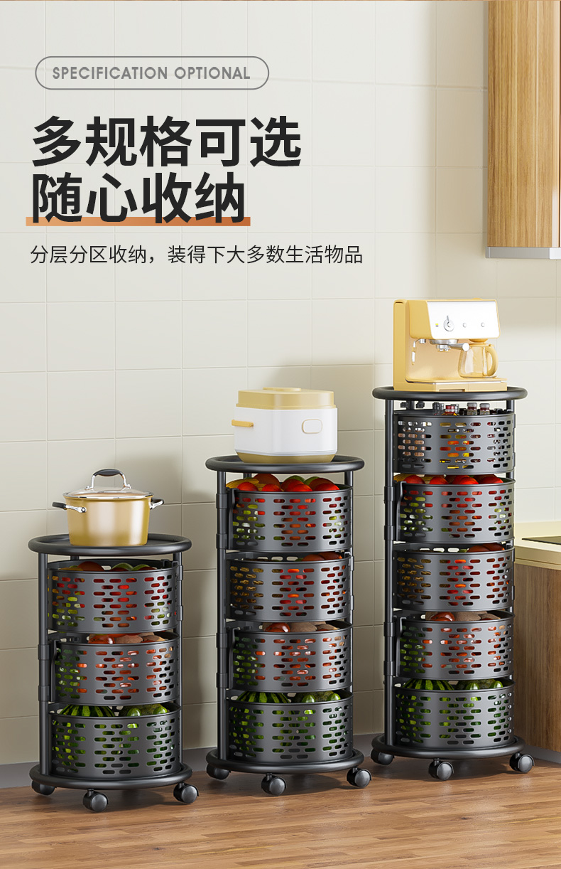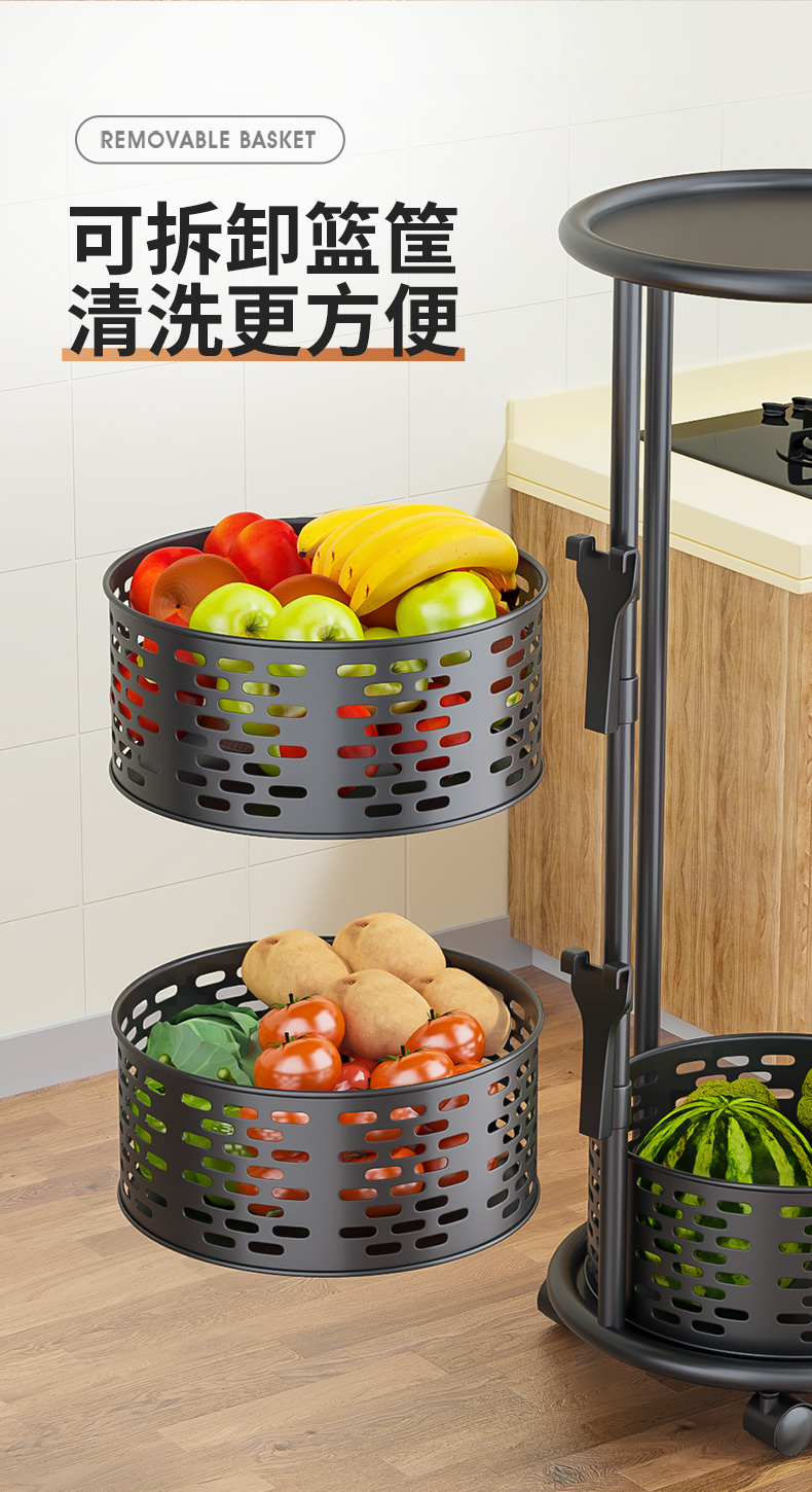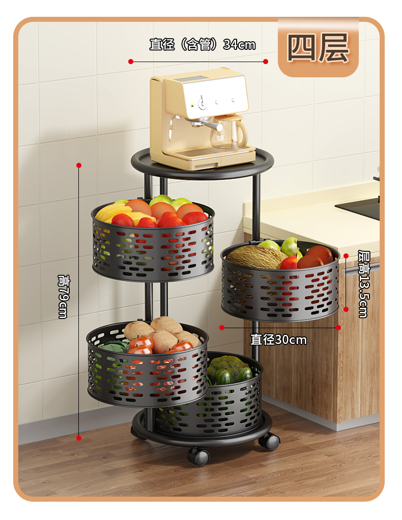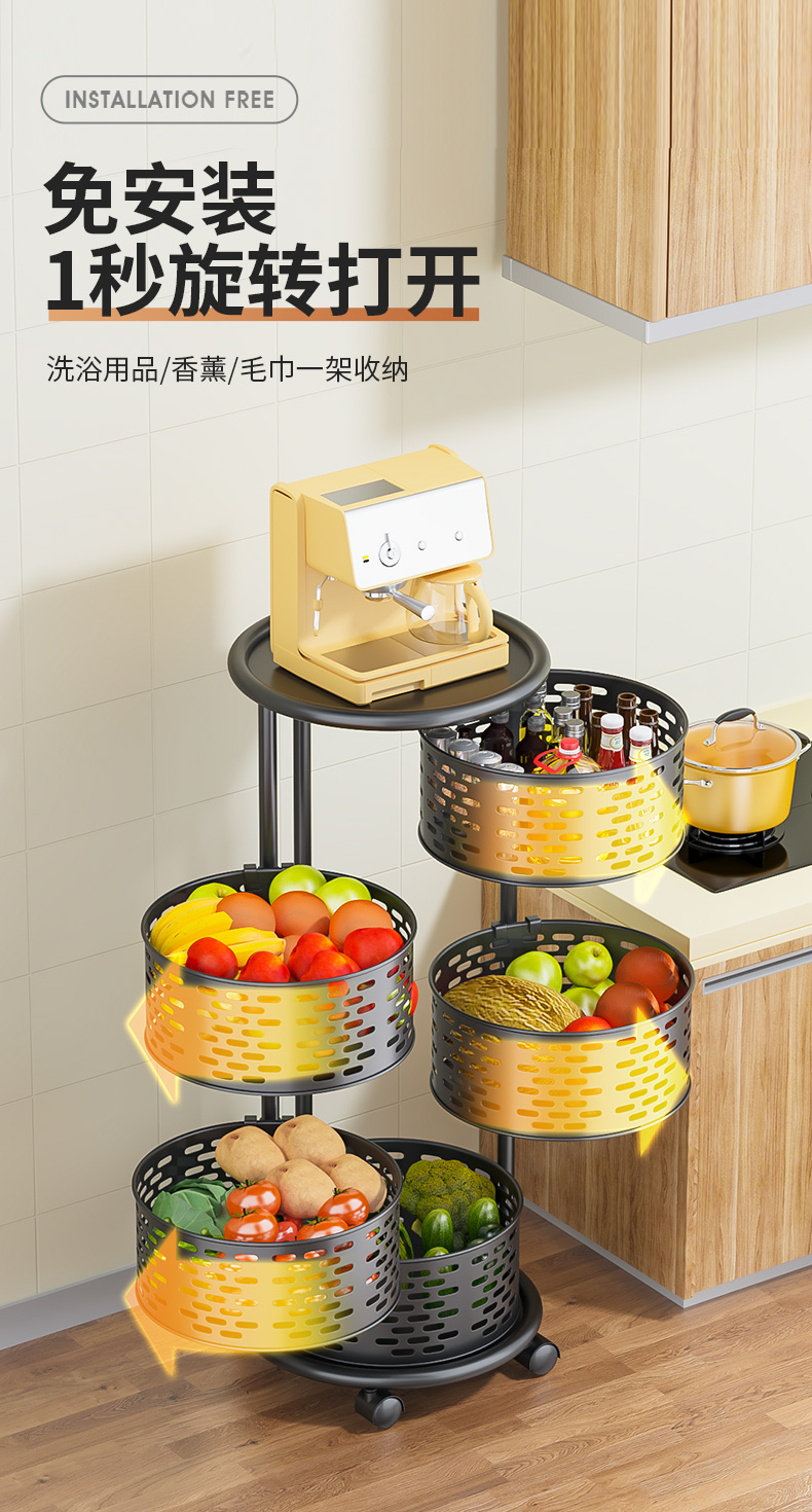 주방 특수 야채 회전 스토리지 랙 과일 및 야채를위한 플로어 스탠딩 가정용 다기능 야채 바구니 다층 스토리지 랙