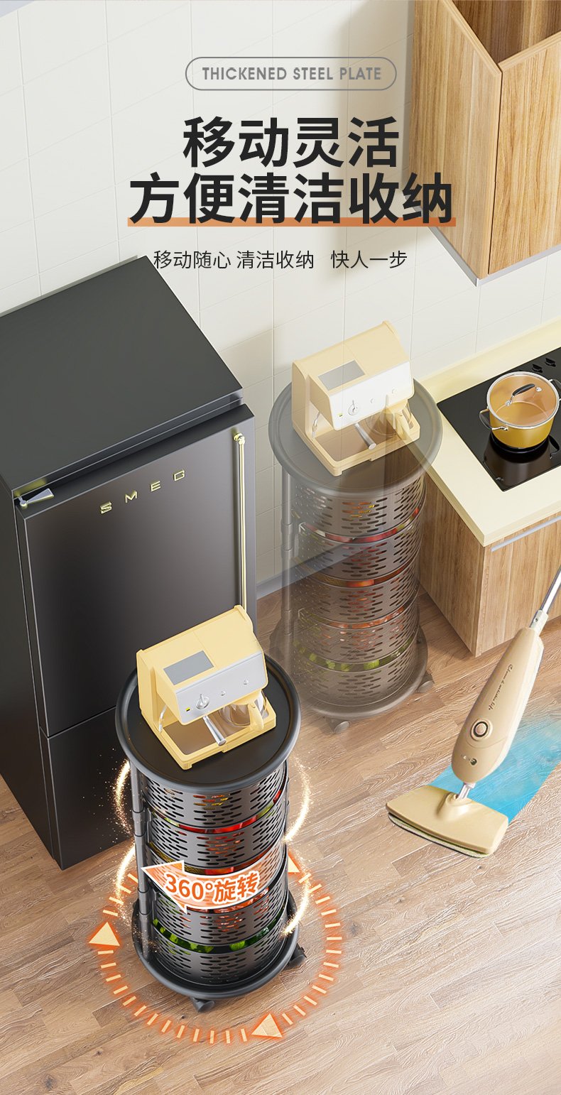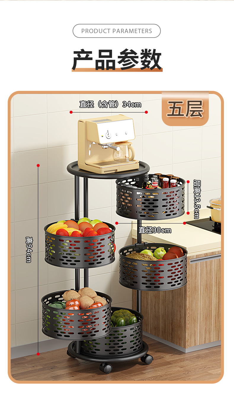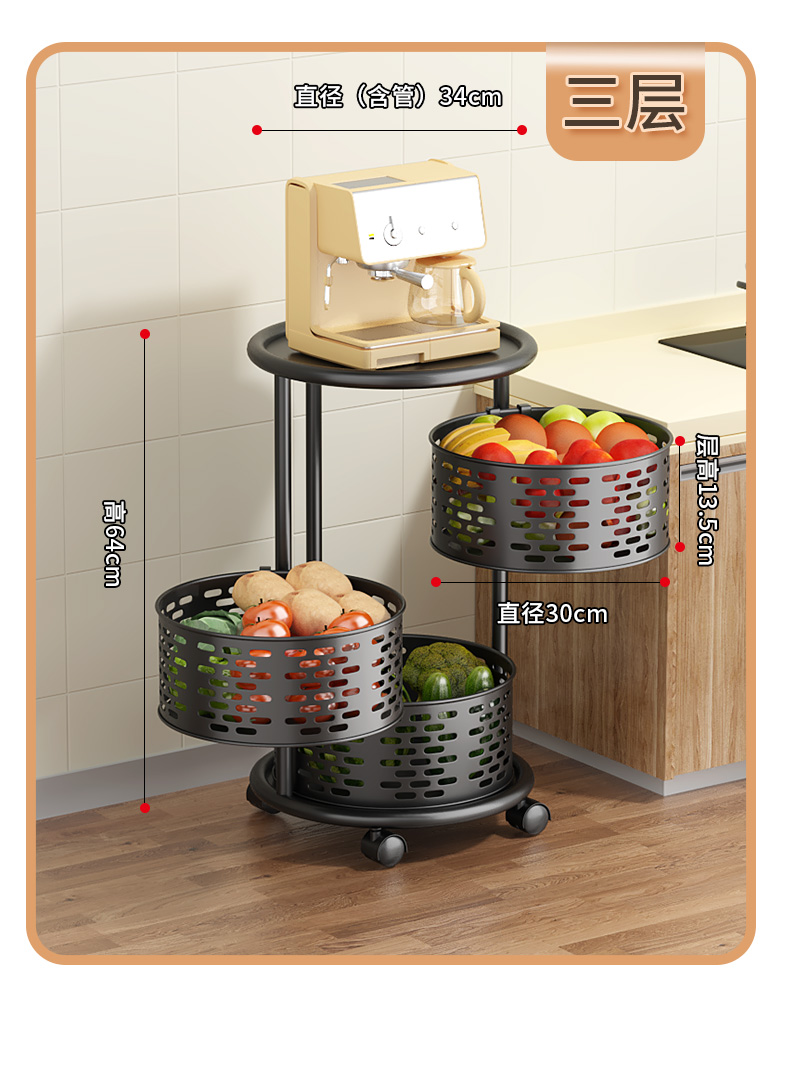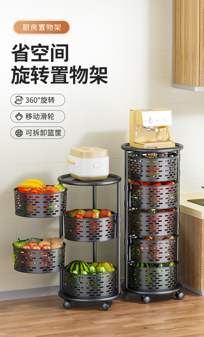 주방 특수 야채 회전 스토리지 랙 과일 및 야채를위한 플로어 스탠딩 가정용 다기능 야채 바구니 다층 스토리지 랙