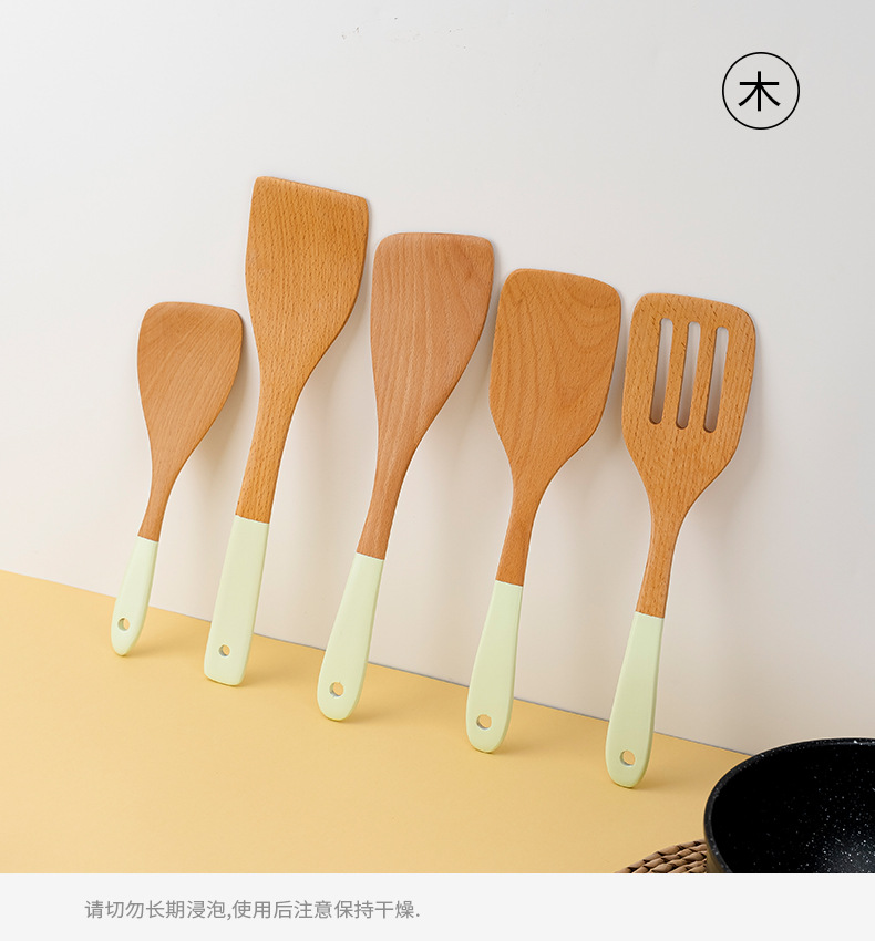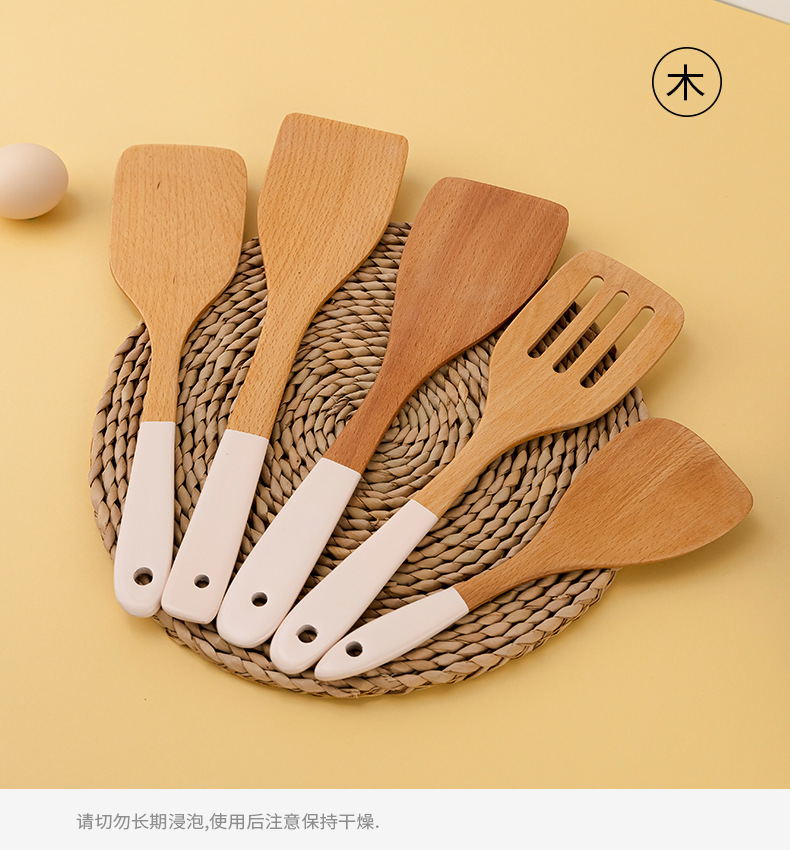 공장 재고 긴 손잡이 나무 주걱 가정용 주방 용품 요리 주걱 나무 주걱 튀김 주걱 사용자 정의 아마존 돈스토어 가기