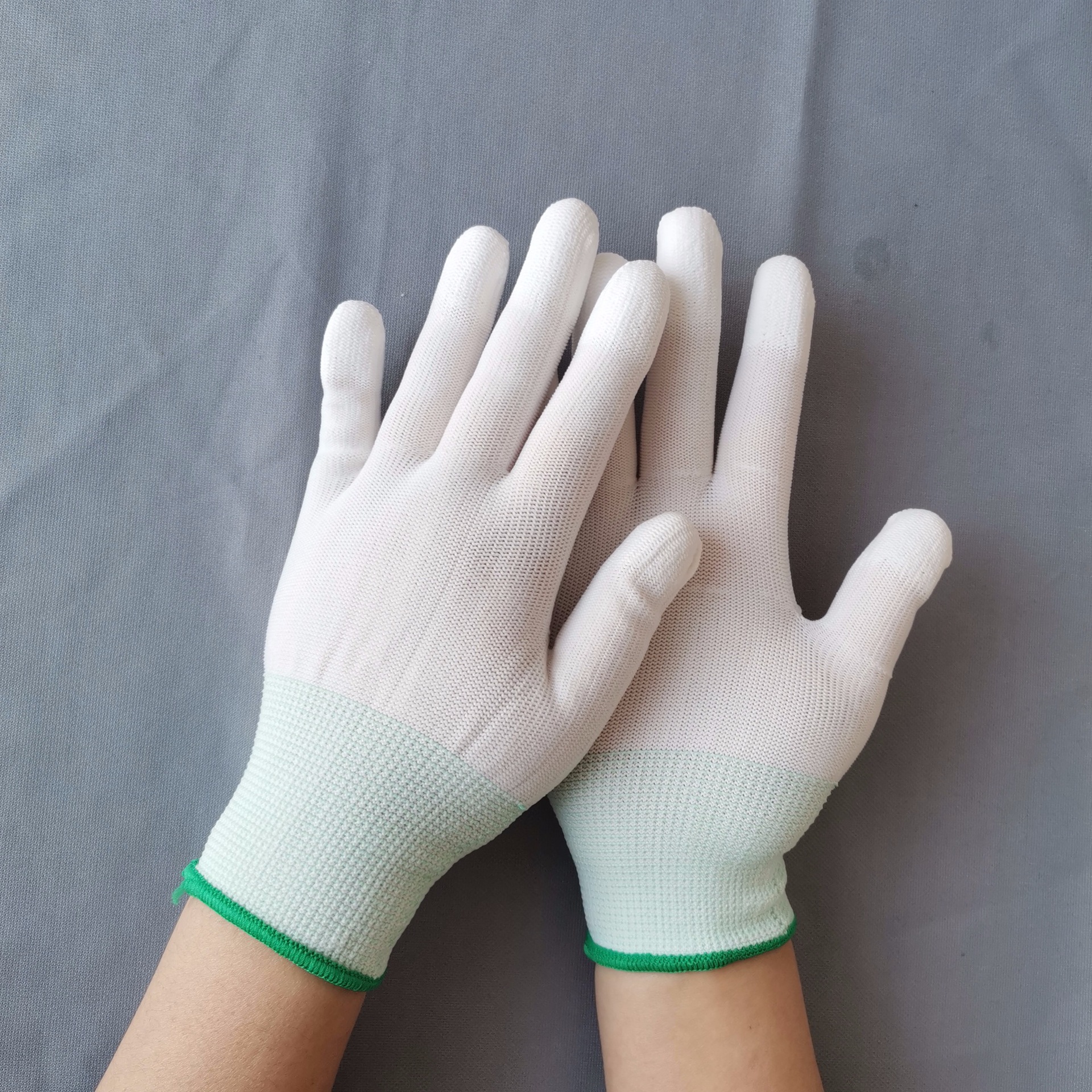 여성용 얇은 흰색 PU 접착제 장갑 13 핀 흰색 나일론 핑거 코팅 통기성 먼지 없는 작업 장갑스토어 가기