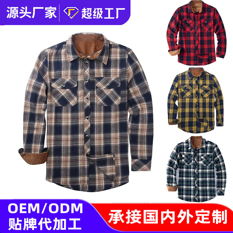 브러쉬드 체크무늬 전면 가공 맞춤형 카디건 스타일 셔츠 순면 청년 셔츠 다용도 슬림핏스토어 가기