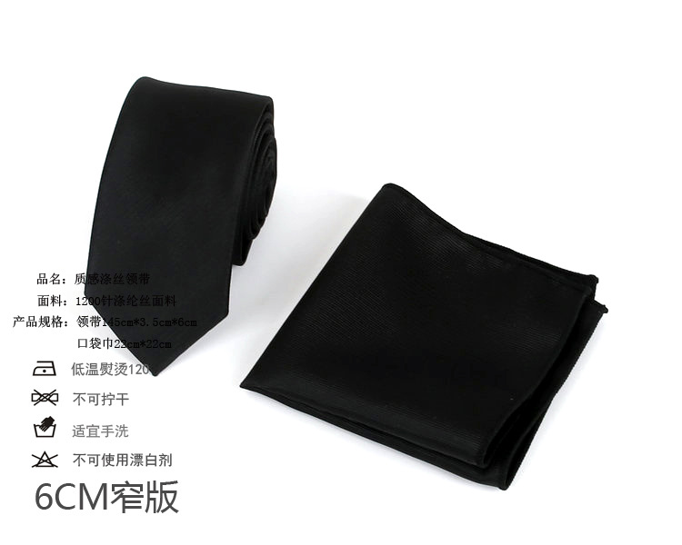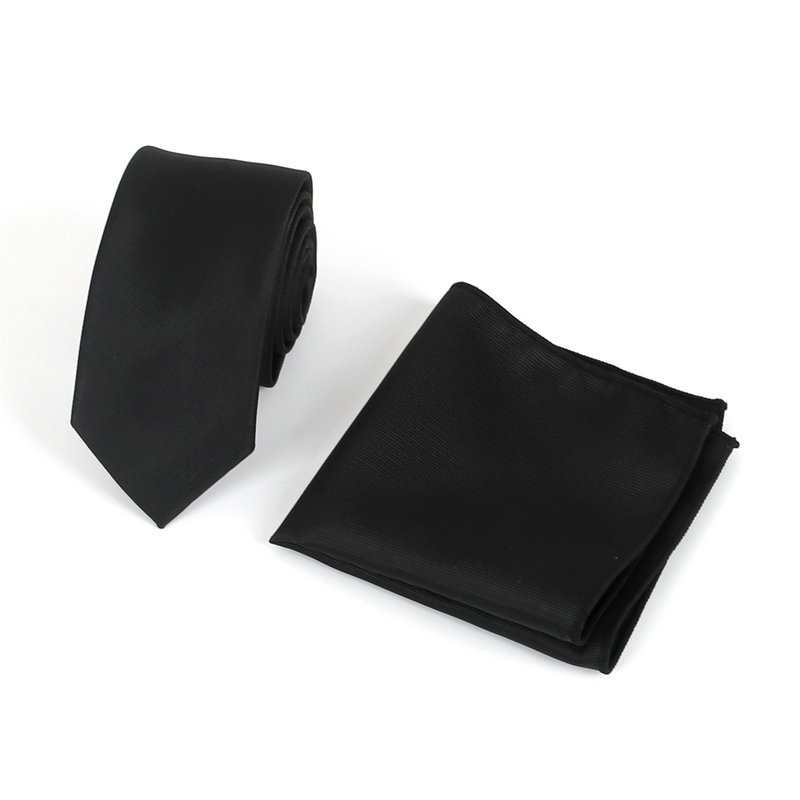 한국 스타일 남자의 원피스 넥타이 남자의 6cm 작은 넥타이 사업 좁은 블랙 트릴 넥타이 포켓 타올 세트