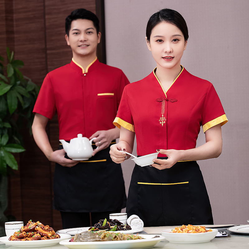 중국 식당 바지 반팔 여성 바베큐 냄비 레스토랑 웨이터 의류 케이터링 호텔 로비 작업복 여름