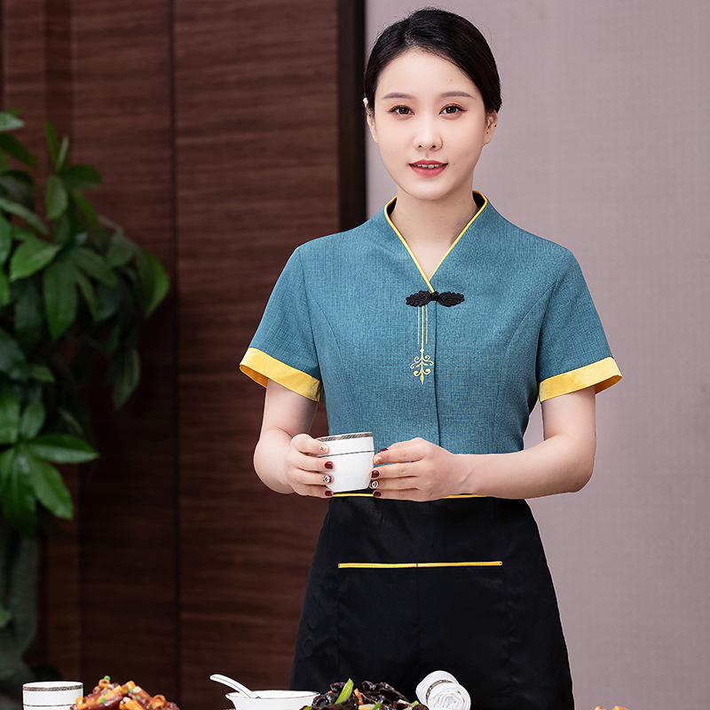 중국 식당 바지 반팔 여성 바베큐 냄비 레스토랑 웨이터 의류 케이터링 호텔 로비 작업복 여름스토어 가기