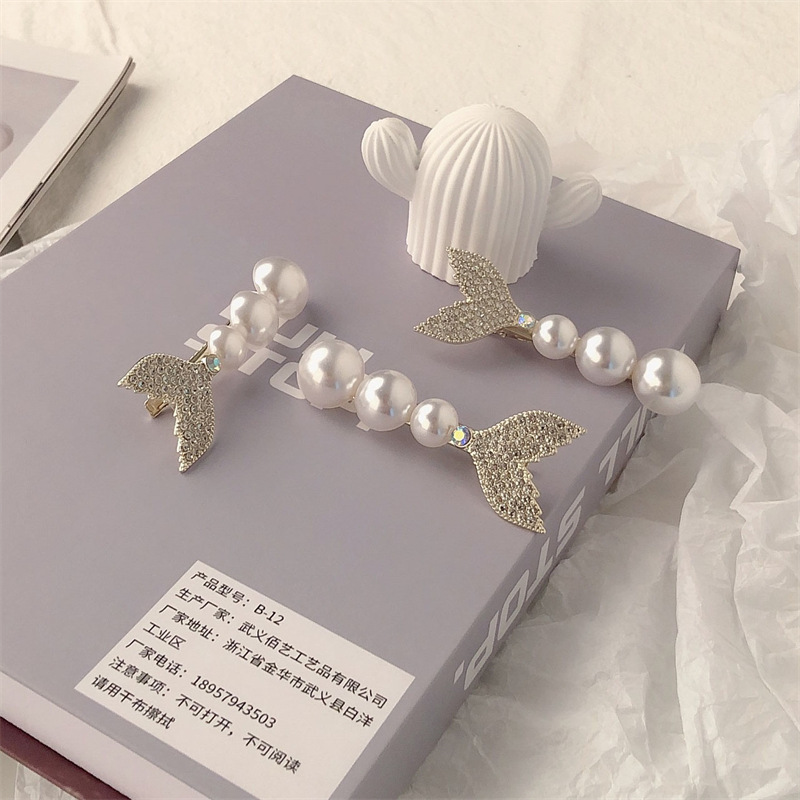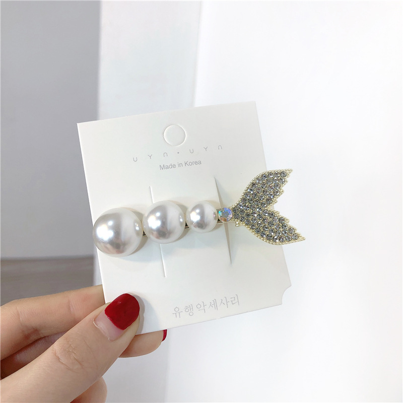 진주 피쉬 테일 머리핀 Duckbill 클립 여성의 인터넷으로 유명한 간단한 우아한 머리핀 새로운 스타일 앞머리 사이드 클립 머리 장식 헤어 액세서리스토어 가기