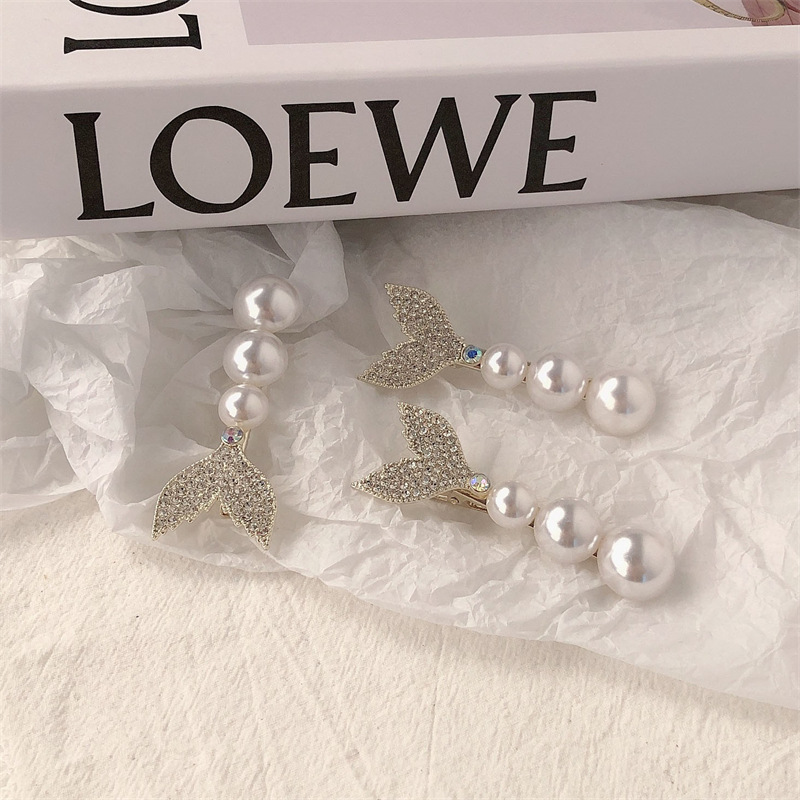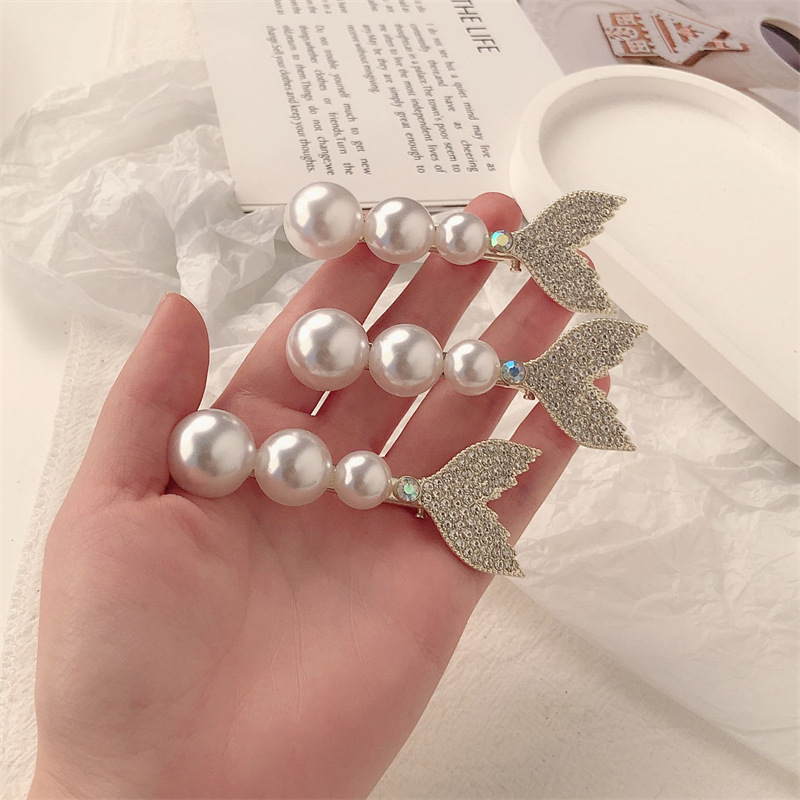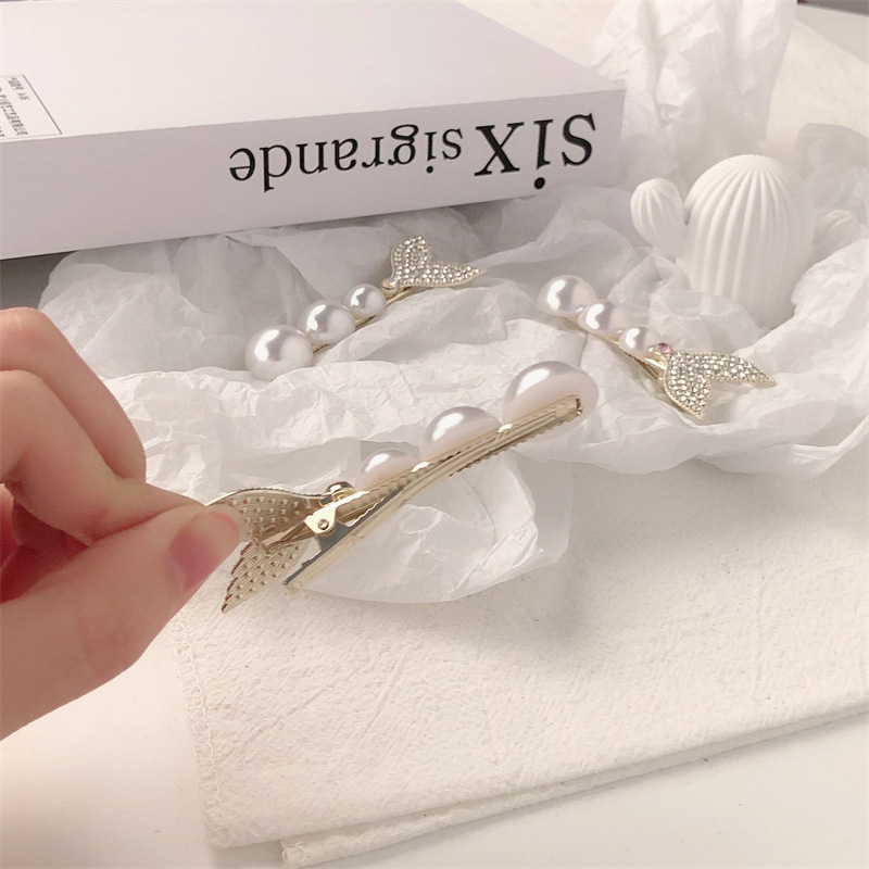 진주 피쉬 테일 머리핀 Duckbill 클립 여성의 인터넷으로 유명한 간단한 우아한 머리핀 새로운 스타일 앞머리 사이드 클립 머리 장식 헤어 액세서리