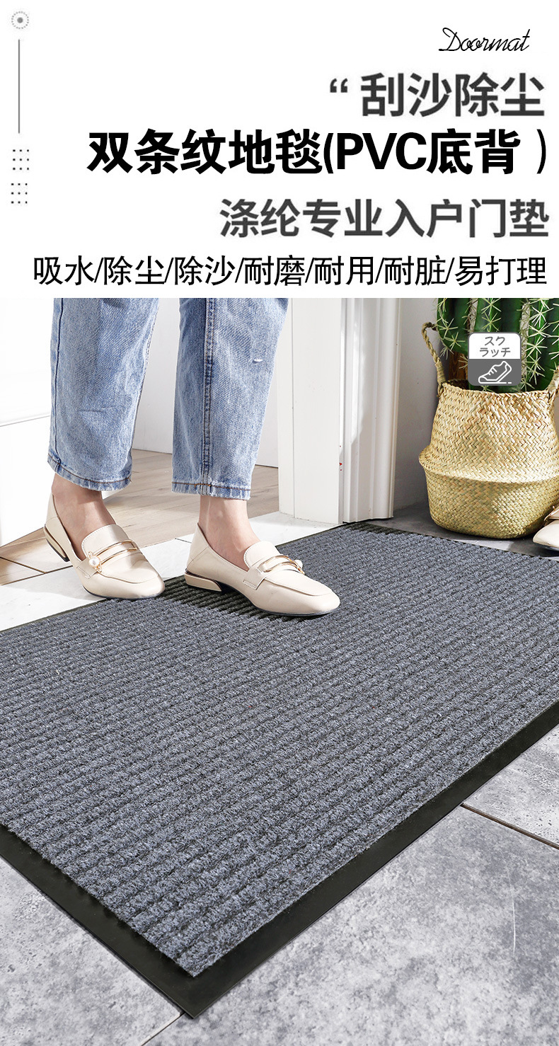 이중 줄무늬 대형 면적 전체 카펫 맞춤형 흡수성 바닥 매트 입구 얼룩 방지 도어 매트 PVC 미끄럼 방지 발 매트스토어 가기