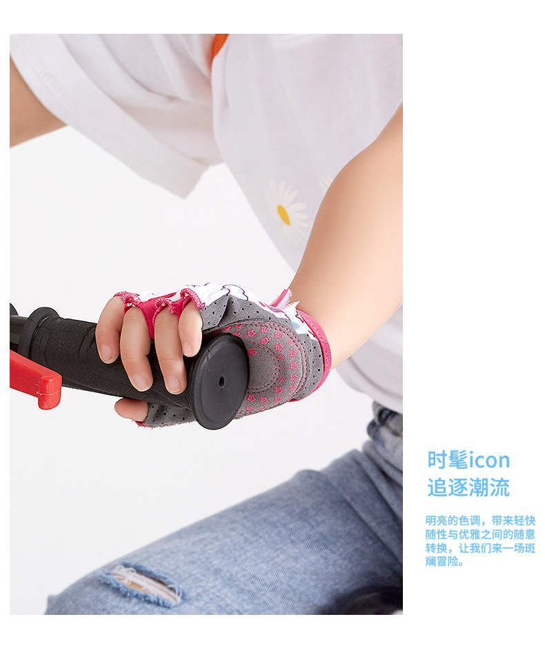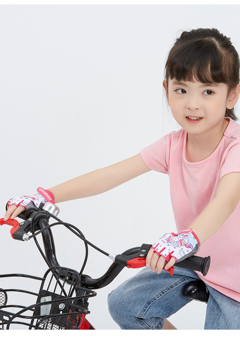 어린이 승마 장갑 귀여운 만화 반 손가락 통기성 보호 균형 자전거 롤러 스케이트 사이클링 스포츠 장갑스토어 가기