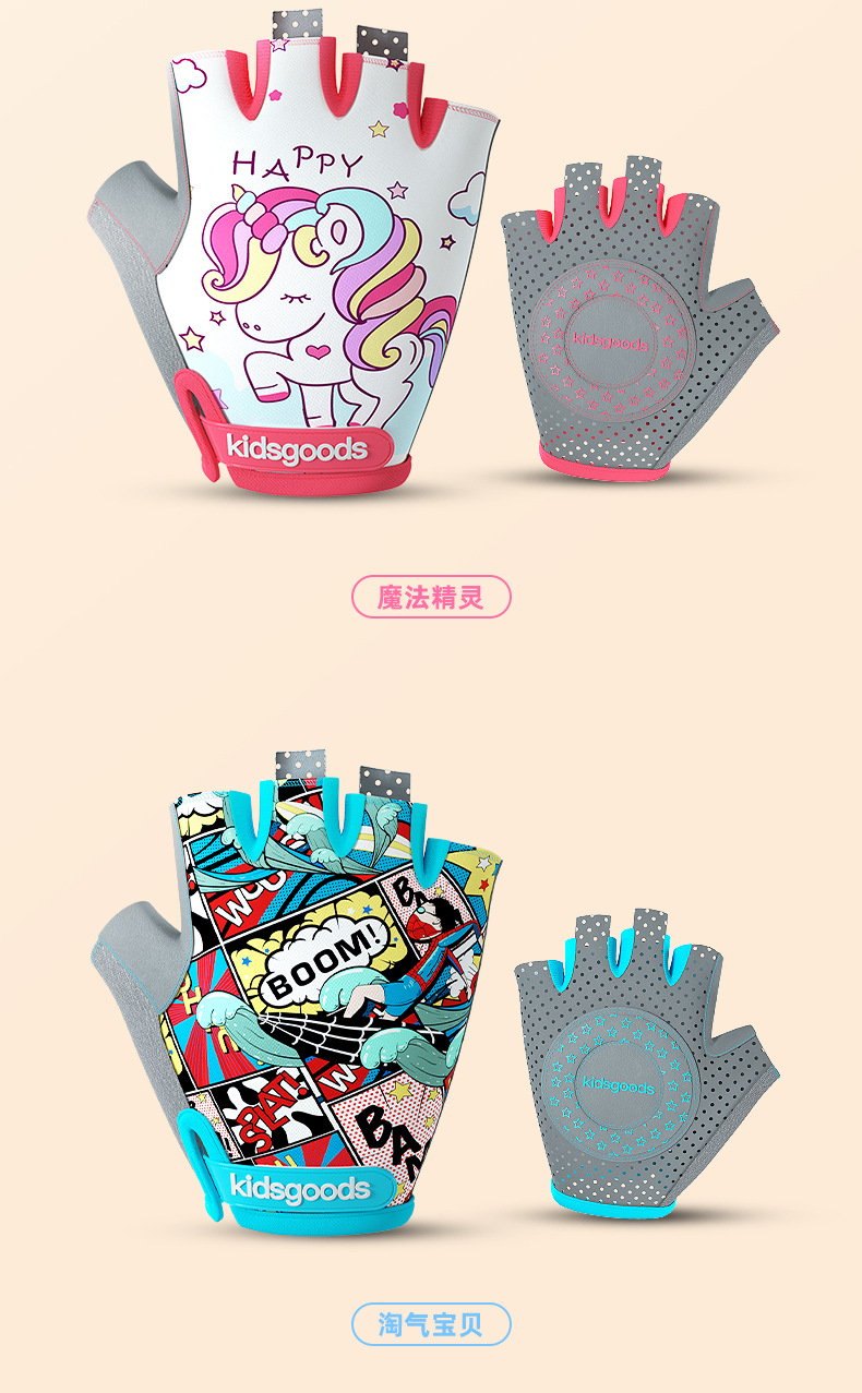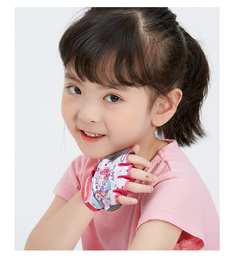 어린이 승마 장갑 귀여운 만화 반 손가락 통기성 보호 균형 자전거 롤러 스케이트 사이클링 스포츠 장갑