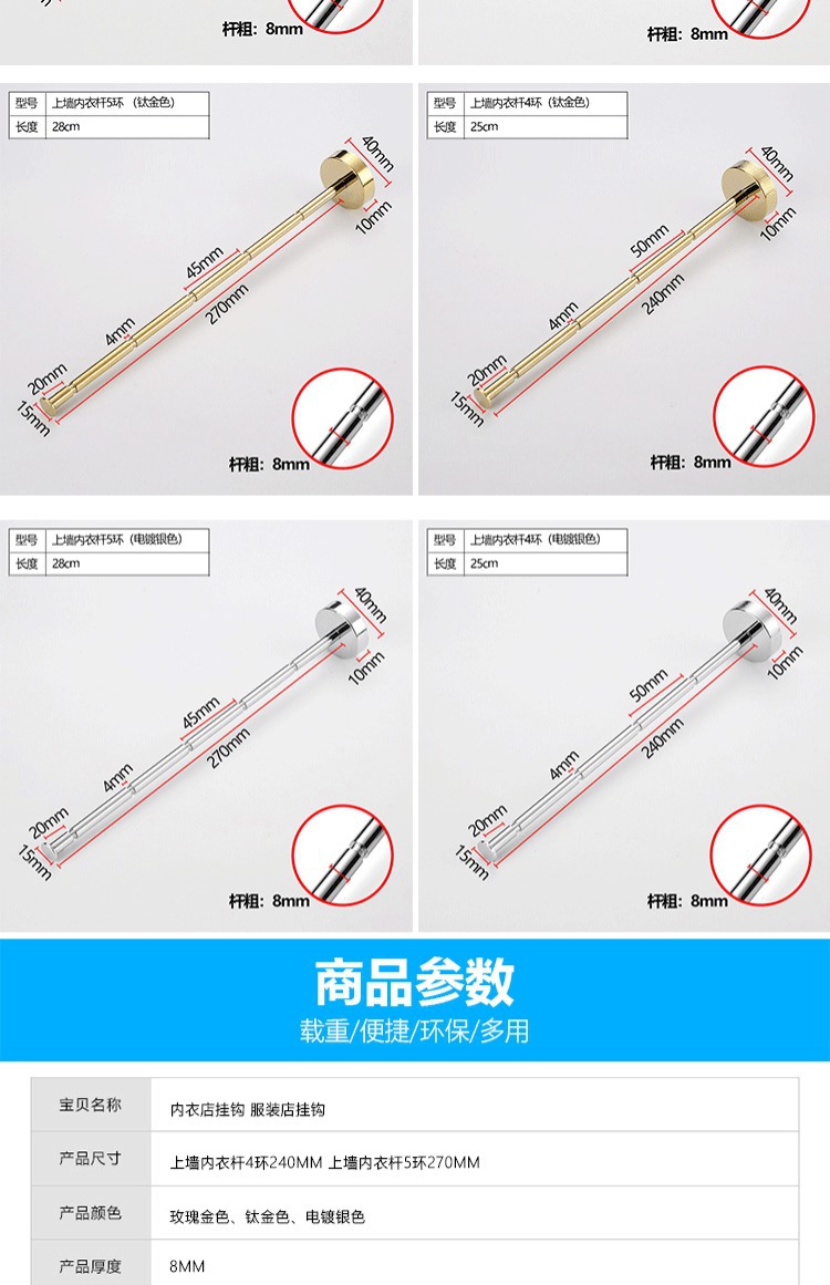 란제리 매장 디스플레이 캐비닛 벽 골드 골드 매달린 기둥을 벽에 금도금 상단 벽 속옷 폴 브래지어 프레임 후크 대나무 스틱